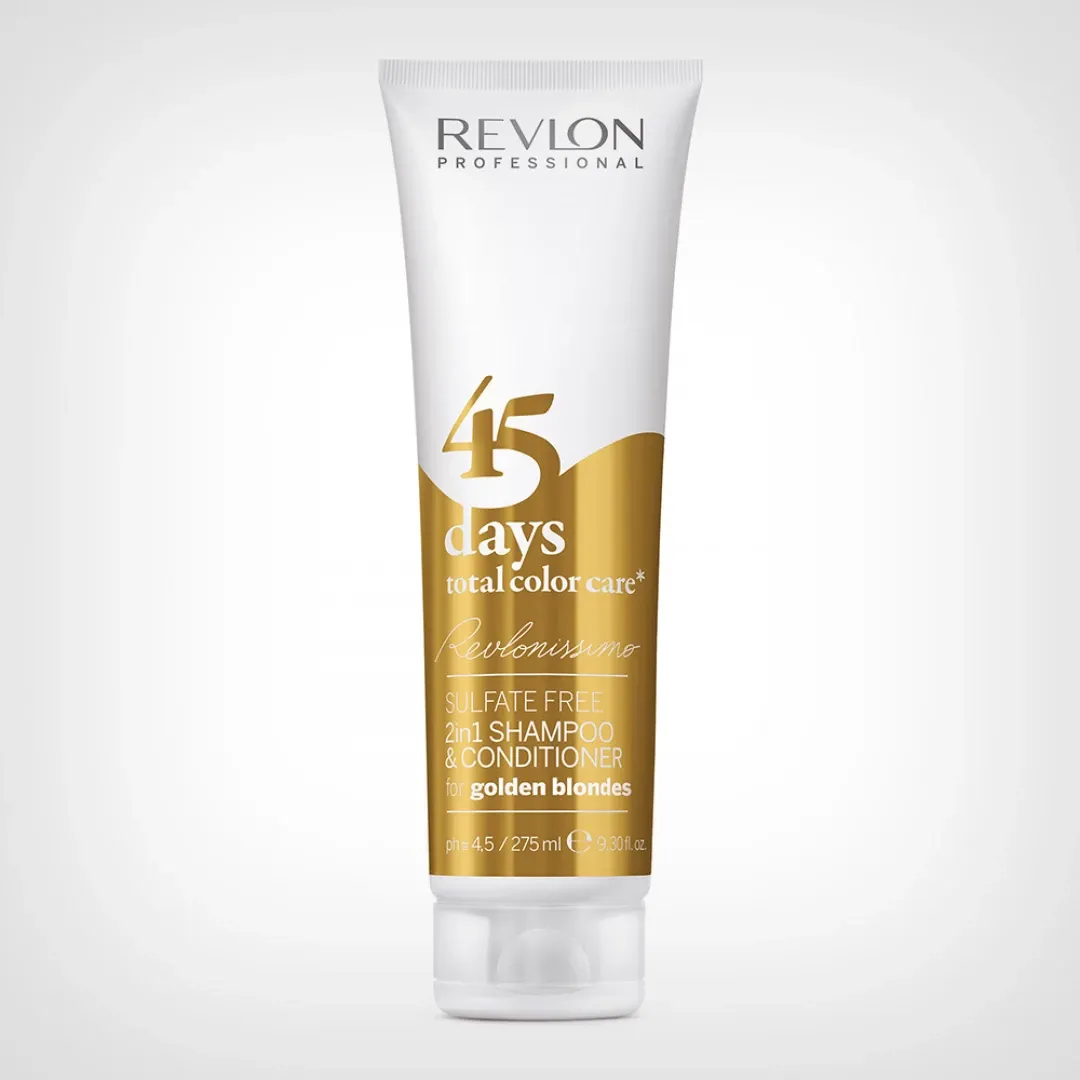 Revlon Professional Revlonissimo 45 Days Conditioning Shampoo Golden Blondes 275ml osigurava da se plava kosa neutralizira dok istovremeno postaje čišća, ojačana i hidratizirana.