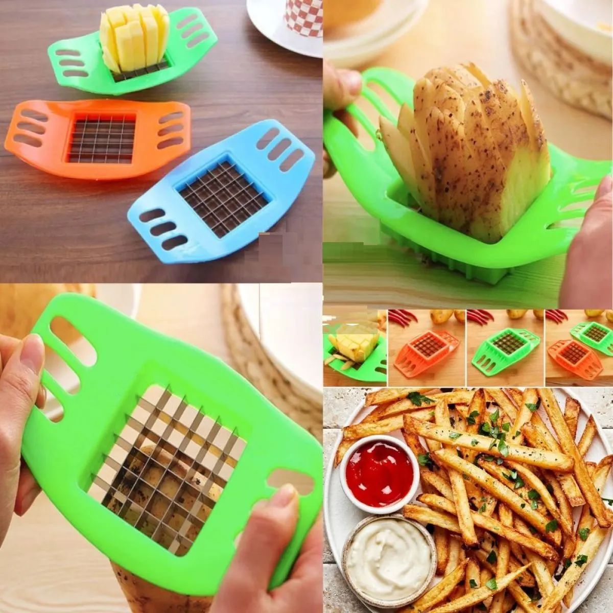 Vrlo jednostavan za korištenje. Samo trebate staviti jedan krumopir prosječne veličine u rezač i provući ga. Također ovaj rezač je vrlo svestran što ga čini pogodnim za rezanje i drugog povrća, kao što je luk, paprika i još mnogo toga, što pripremu obroka čini bržom i lakšom. -Značajke: - Vrlo jednostavan za pohranu i uporabu. - Vrlo lako se čisti. - Brz i jednostavan način za pripremiti ukusne domaće krumpiriće - Izvrstan za sve vrste