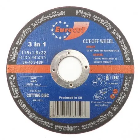 Rezna ploča za metal 115X1,6 Eurocut za industrijsko rezanje čelika, inoxa i aluminija. Rezna ploča visoke kvalitete proizvedena u EU sa iso 9001 certifikatom.