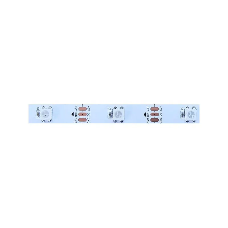 LED traka duljine 1 metar s 30 WS2812B RGB LEDica (poznate i kao NeoPixel) koje je moguće pojedinačno kontrolirati - ovo je digitalna traka s adresiranjem svake pojedine LEDice čija boja se kontrolira s 8-bitnom PWM preciznošću (24-bitna boja). Traka je napravljena od bijelog fleksibilnog PCB materijala bez dodatne zaštite (nije za vanjsku upotrebu). Prodaja po metru, maksimalno 5 m u komadu.
