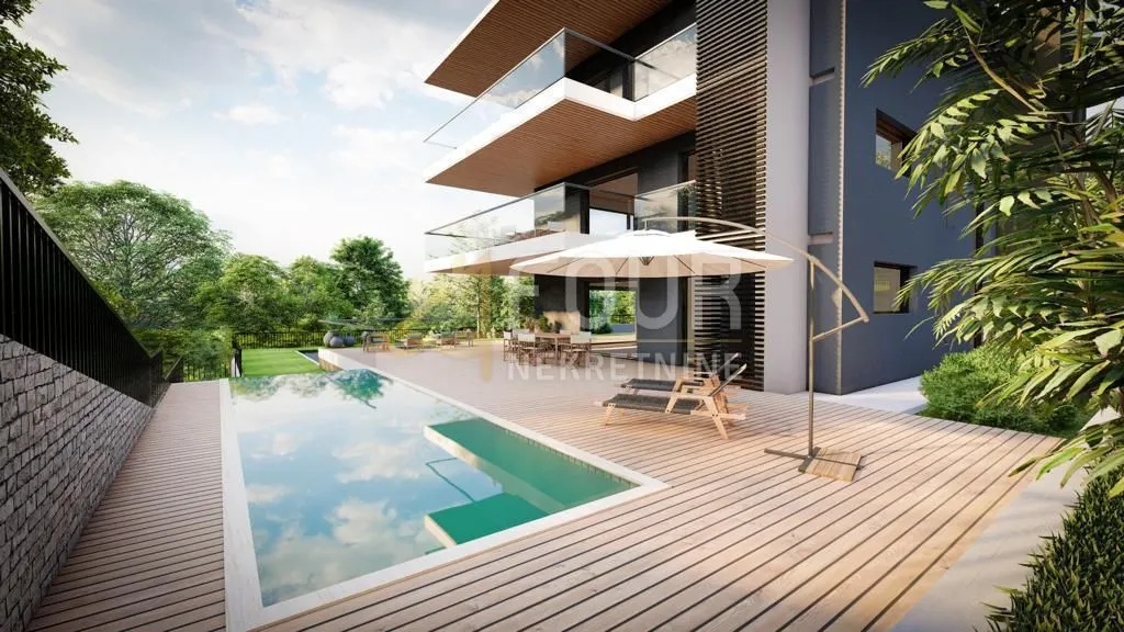 U ponudi je ekskluzivna moderna novogradnja s ukupno pet luksuznih stanova, podzemnom garažom i zajedničkim fitnessom, projektirana prema najvišim standardima suvremenog stanovanja! Planirani završetak radova je proljeće/ljeto 2026. godine. Predmetna nekretnina ima sveukupnu površinu 167.67m2. Stambeni dio ima 94.63m2 i obuhvaća prostrani dnevni boravak s kuhinjom i blagovaonicom, dvije spavaće sobe, dvije kupaonice, servis i hodnik. Posebnu vrijednost pruža impresivan vanjski dio - terasa 42.14m2, decking 48.74m2, bazen 24m2 i vrt 119.43m2. Stanu pripadaju dva garažna parkirna mjesta i spremište. Objekt je opremljen vrhunskom opremom renomiranih proizvođača – energetski učinkovitim podnim grijanjem i pametnim sustavom dizalica topline Daikin, uključujući dizalice topline, klima uređaje i bojlere (smart sustav upravljanja). Ugrađeno je dizalo Schindler koje povezuje sve etaže zgrade. Kupaonice su opremljene sanitarijama vrhunske kvalitete brenda Villeroy & Boch, dok su špine, tuševi i mješalice iz nove serije proizvođača GROHE. Vanjska stolarija je aluminijska, s troslojnim kaljenim staklima, a dodatnu udobnost i energetsku učinkovitost osiguravaju aluminijske žaluzine na struju (smart upravljanje). Prodaje po sistemu “ključ u ruke”, bez namještaja. Postoji mogućnost potpunog opremanja i namještanja nekretnine (uz nadoplatu). Riječ je o nekretnini koja spaja luksuz, energetsku učinkovitost i funkcionalnost, idealnoj za cjelogodišnje stanovanje ili kao investicija na atraktivnoj lokaciji. Za ovu nekretninu kupac je oslobođen plaćanja poreza na promet nekretnina. Poštovani klijenti, agencijska provizija naplaćuje se u skladu s Općim uvjetima poslovanja. ID KOD AGENCIJE: S4450 Lucijan Uravić Agent s licencom Mob: +385958671529 Tel: +385914944145 E-mail: lucijanuravic@four-nekretnine.hr https://four-nekretnine.hr/ Selin Ibryam Koordinator za strane investitore Mob: +385977001244 Tel: +385914944145 E-mail: selinibryam@four-nekretnine.hr https://four-nekretnine.hr/