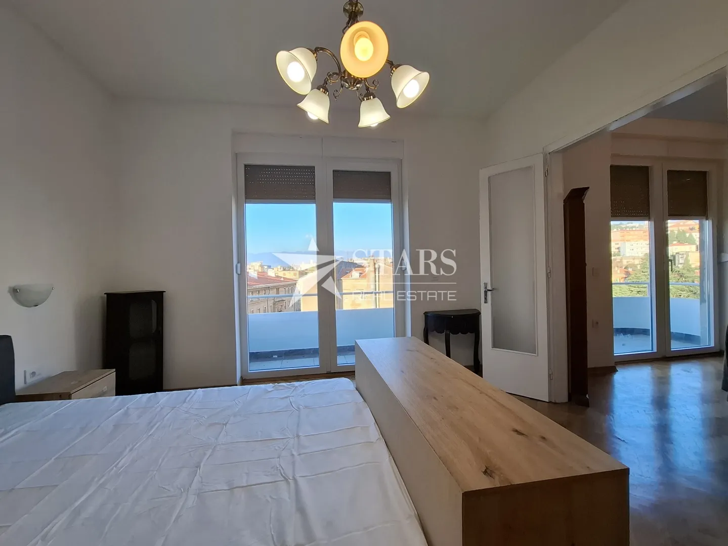 Stan je orijentiran prema jugu i istoku, izuzetno je svijetao, ugodan i topao, uz djelomičan pogled na more. Najvećem balkon od čak tri balkona moguće je pristupiti iz dnevnog boravka ali i iz glavne spavaće sobe. Glavna spavaća soba odvojena je degažmanom od ostatka stana te ima svoju kupaonicu.
