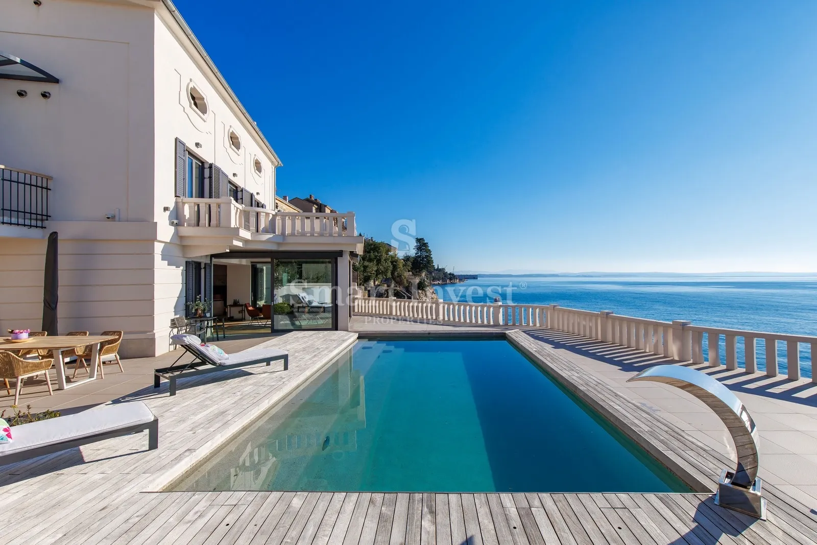 RIJEKA PREKRASNA SAMOSTOJEĆA VILA S BAZENOM I VEZOM ZA BROD – PRVI RED DO MORA Na prodaju je ekskluzivna vila smještena u prvom redu do mora, na jednoj od najatraktivnijih i najcjenjenijih lokacija u Rijeci poznatoj po miru, zelenilu i dobroj povezanosti s centrom grada. Položaj uz samu obalu omogućuje mir, privatnost i otvoren pogled na Kvarnerski zaljev, uz osjećaj potpune povezanosti s morem i prirodom, ali i praktičnu blizinu svakodnevnih sadržaja. Ova iznimna nekretnina je osmišljena kao mjesto za opušten život uz more, s naglaskom na udobnost, funkcionalnost i kvalitetan boravak tijekom cijele godine. Vila se ističe suvremenim arhitektonskim stilom, prostranim i svijetlim interijerom te velikim staklenim stijenama koje povezuju unutarnji i vanjski prostor i omogućuju obilje prirodnog svjetla, a neposredan pristup plaži, bazen, privatni vez za brod i uređena okućnica čine ovu nekretninu zaista posebnom ponudom na tržištu. RASPORED U prizemlju vile smještena je prekrasna moderna kuhinja povezana s prostranim dnevnim boravkom u otvorenom konceptu koji odiše svjetlom i elegancijom. Velike staklene stijene omogućuju izravan izlaz na terasu, bazen površine 35 m² i uređenu okućnicu s pogledom na more, brišući granicu između unutarnjeg i vanjskog prostora. Dnevni boravak pruža savršeno mjesto za opuštanje uz pogled na more, dok je vanjski prostor idealan za sunčanje, druženja i uživanje na otvorenom u potpunoj privatnosti. U prizemlju se također nalazi prekrasan ostakljeni vinski bar te WC za goste i malo spremište. Na prvom katu vile se nalazi master spavaća soba s vlastitom, luksuznom kupaonicom, koja pruža potpunu privatnost i osjećaj ekskluzivnosti. Master spavaća soba izlazi na prostranu terasu, idealnu za opuštanje uz pogled na more, jutarnju kavu ili večernje uživanje u zalasku sunca. U sklopu sobe postoji odvojeni dio sa modernom kuhinjom za pripremu kave i doručka. Na istom katu smještena je i još jedna dodatna spavaća soba, elegantno uređena i prilagođena udobnom boravku. U suterenu vile nalazi se luksuzna sauna s prostorom za relaksaciju, osmišljena kao privatna wellness oaza. Iz saune se izlazi direktno na vlastitu plažu, što omogućuje jedinstven doživljaj – nakon opuštanja i topline saune, nekoliko koraka dijeli vas od mora i osvježavajućeg kupanja, u potpunoj privatnosti i miru. DODATNE PREDNOSTI Posebnu vrijednost ove vile čini privatni vez za brod, smješten neposredno ispred nekretnine, što omogućuje brz i jednostavan pristup moru u bilo koje doba dana. Ova rijetka pogodnost pruža potpunu slobodu plovidbe i čini vilu idealnim izborom za ljubitelje nautike, spajajući luksuz stanovanja s jedinstvenim životom uz more. Uz vilu se nalazi i dodatni, potpuno odvojeni stan s zasebnim ulazom, moderno i kvalitetno opremljen te idealan za goste, članove obitelji ili kao miran radni prostor. Stan se sastoji od dnevnog boravka s kuhinjom otvorenog koncepta, koji odiše suvremenim dizajnom i funkcionalnošću, ureda koji pruža mirno okruženje za rad, te spavaće sobe s vlastitom kupaonicom. Grijanje u cijeloj kući je na dizalicu topline, podno grijanje. Vila je potpuno ograđena, opremljena suvremenim alarmnim sustavom te aluminijskom kapijom na daljinsko upravljanje, čime je osigurana visoka razina privatnosti i sigurnosti. Na ulazu u okućnicu nalazi se garaža površine 55 m² s mogućnošću parkiranja tri vozila. Ova vila pruža rijetku priliku za život uz more, s vlastitim pristupom obali i vezom za brod, u mirnom okruženju koje nudi istinsku slobodu, privatnost i kvalitetu boravka. NEKRETNINA VRIJEDNA PAŽNJE! Za više informacija i razgled nazovite +385/99/320-0008 ID KOD AGENCIJE: 16202 Hanadi Jurjević dipl.oec Agent s licencom Mob: +385(0)91/420-1421 E-mail: hanadi@smart-invest.hr www.smart-invest.hr Ted Jurjević Agent s licencom Mob: +385(0)99/320-0007 E-mail: ted@smart-invest.hr www.smart-invest.hr