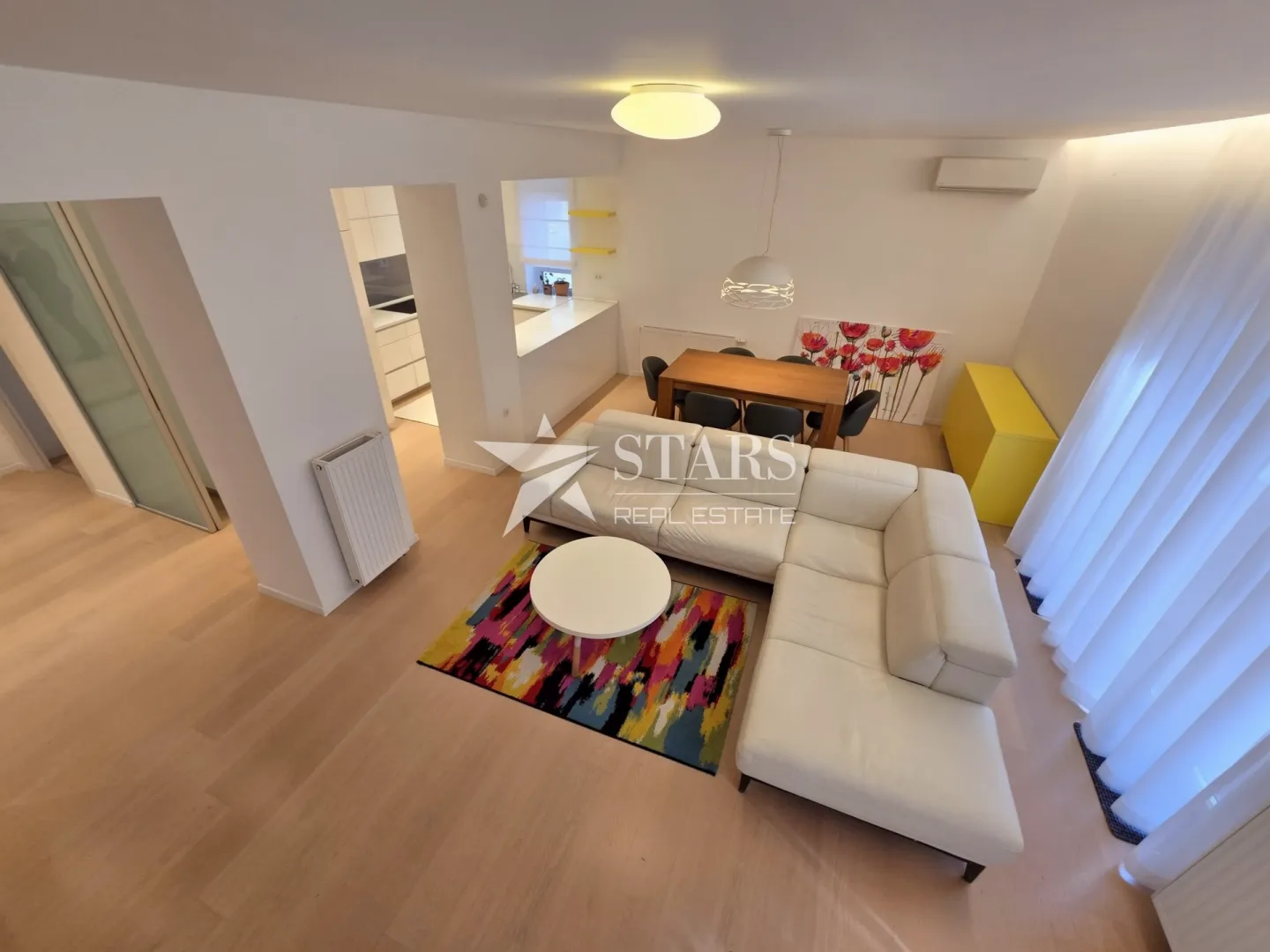 Stan ukupne površine 183,44 m² prostire se na dvije etaže i odlikuje se obiljem prirodnog svjetla, funkcionalnim rasporedom i modernim uređenjem. Prodaje se potpuno namješten te je spreman za useljenje bez dodatnih ulaganja.