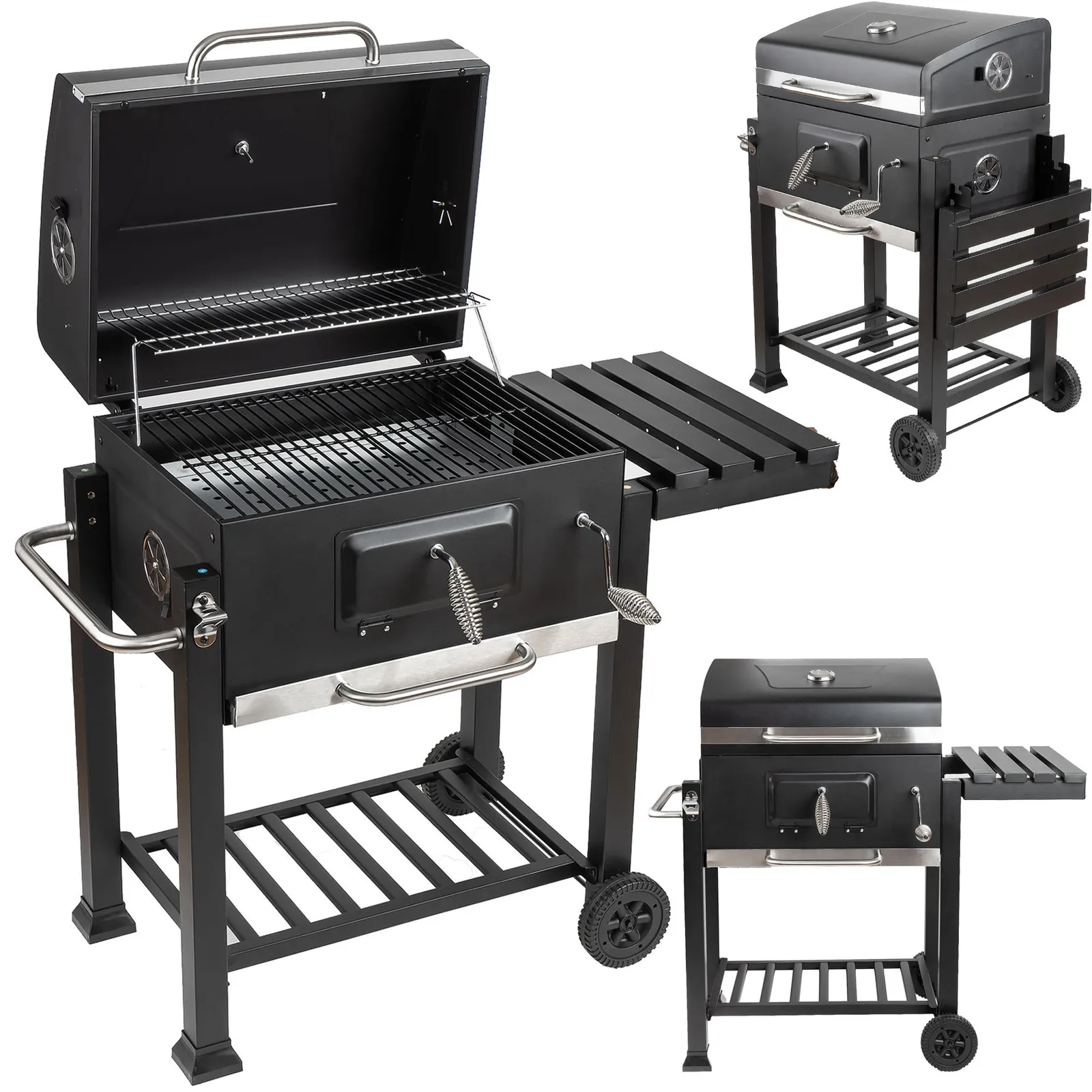 Donja polica nudi dodatni prostor za odlaganje ugljena ili opreme za roštiljanje. Roštilj je opremljen kotačima i čvrstom ručkom, što olakšava premještanje. Na prednjem dijelu nalazi se ugrađeni otvarač za boce, koristan dodatak tijekom svakog druženja.
