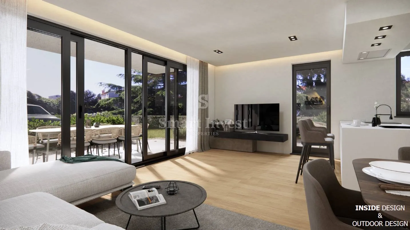 ROVINJ - centar, vrhunski stan od 121.83 m2 s prostranom terasom, vrtom od 40 m2 i garažom, u luksuznoj novogradnji na odličnoj lokaciji u centru Rovinja! Moderna novogradnja vrhunske kvalitete s ukupno 6 stanova gradi se na iznimnoj lokaciji u centru Rovinja, svega 5 minuta pješke udaljenoj od mora, ACI Marina Rovinj, te deset minuta lagane šetnje do starog grada. Gradi pouzdani investitor koji je poznat po visokoj kvaliteti radova i vrhunskim materijalima koji se koriste u izgradnji. Planirani početak gradnje na proljeće 2022. te završetak radova do kraja 2023.godine. STAN 2 – prizemlje – 121.83 m2 + vrt 40 m2 + garaža 13 m2 + ostava 6.20 m2 Sastoji se od hodnika, dnevnog boravka s kuhinjom i blagovaonom te izlazom na natkrivenu terasu od 19.56 m2, 2 komotne spavaće sobe svaka s vlastitom kupaonom, dodatnog wc-a, ostave (površina unutarnjeg prostora 102.27 m2 + natkrivena terasa od 19.56 m2). Stanu pripada vrt površine 40 m2, garaža od 13 m2 i ostava od 6.20 m2. OPREMA • SMART HOME sustav upravljanja s pametnog telefona grijanjem i hlađenjem • podno grijanje i grijanje vode na dizalicu topline MITSUBISHI • dodatno grijanje i hlađenje na ventilokonvektore (fan coil) • podne podloge – parket i keramika najviše kvalitete • unutarnja vrata od punog drveta • aluminijska stolarija SCHUCO • vatrootporna i protuprovalna ulazna vrata T-30 • svaki stan posjeduje svoj depurator pitke vode • dizalo KONE • termoizolacija fasade s EPS pločama 10 cm i 15 cm debljine • termoizolacija krova 15 cm XPS ploče, te hidroizolacija • mogućnost izbora materijala po želji kupca LOKACIJA Zgrada se nalazi na odličnoj lokaciji u centru Rovinja, svega 5 minuta šetnje do mora i ACI Marina Rovinj, te deset minuta lagane šetnje do starog grada. *U cijenu uključen PDV 25%, kupac je oslobođen plaćanja poreza na promet nekretnina Za sve ostale informacije nazovite +385/91/320-0021 ID KOD AGENCIJE: 12648 Agencija Opatija Ovlašteni posrednik Mob: +385/99/320-0008 E-mail: office@smart-invest.hr www.smart-invest.hr