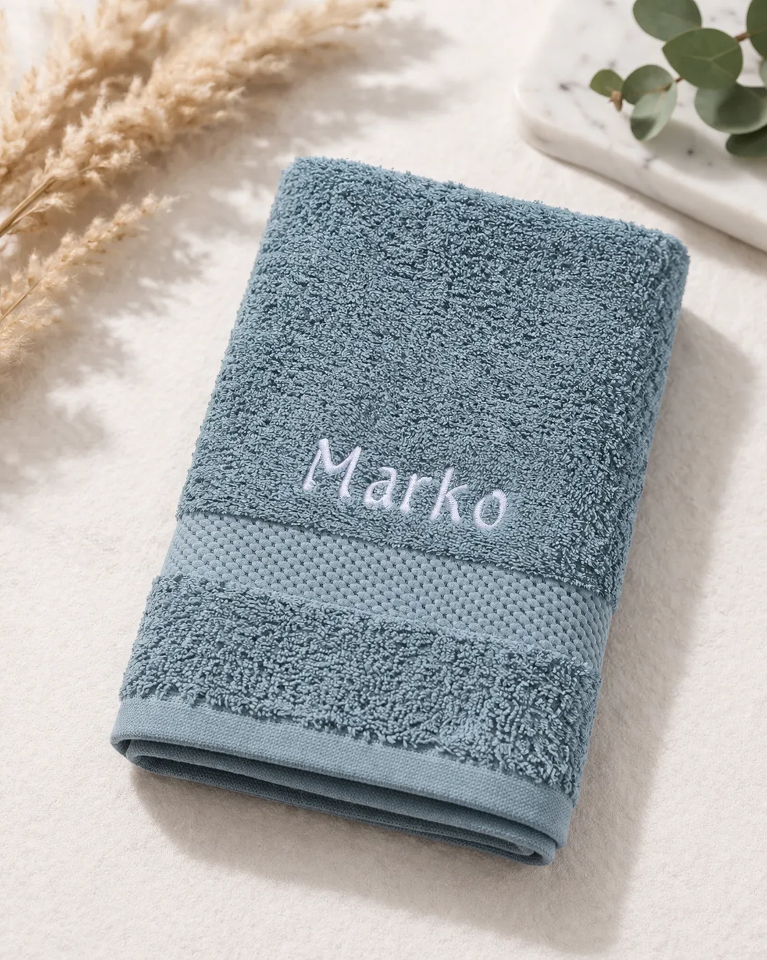 Mekan, nježan i personaliziran – ovaj plavi dječji ručnik savršen je mali poklon koji ima posebno značenje. Uz ime izvezeno kvalitetnim koncem, svaki ručnik postaje unikatan i baš “njihov”.