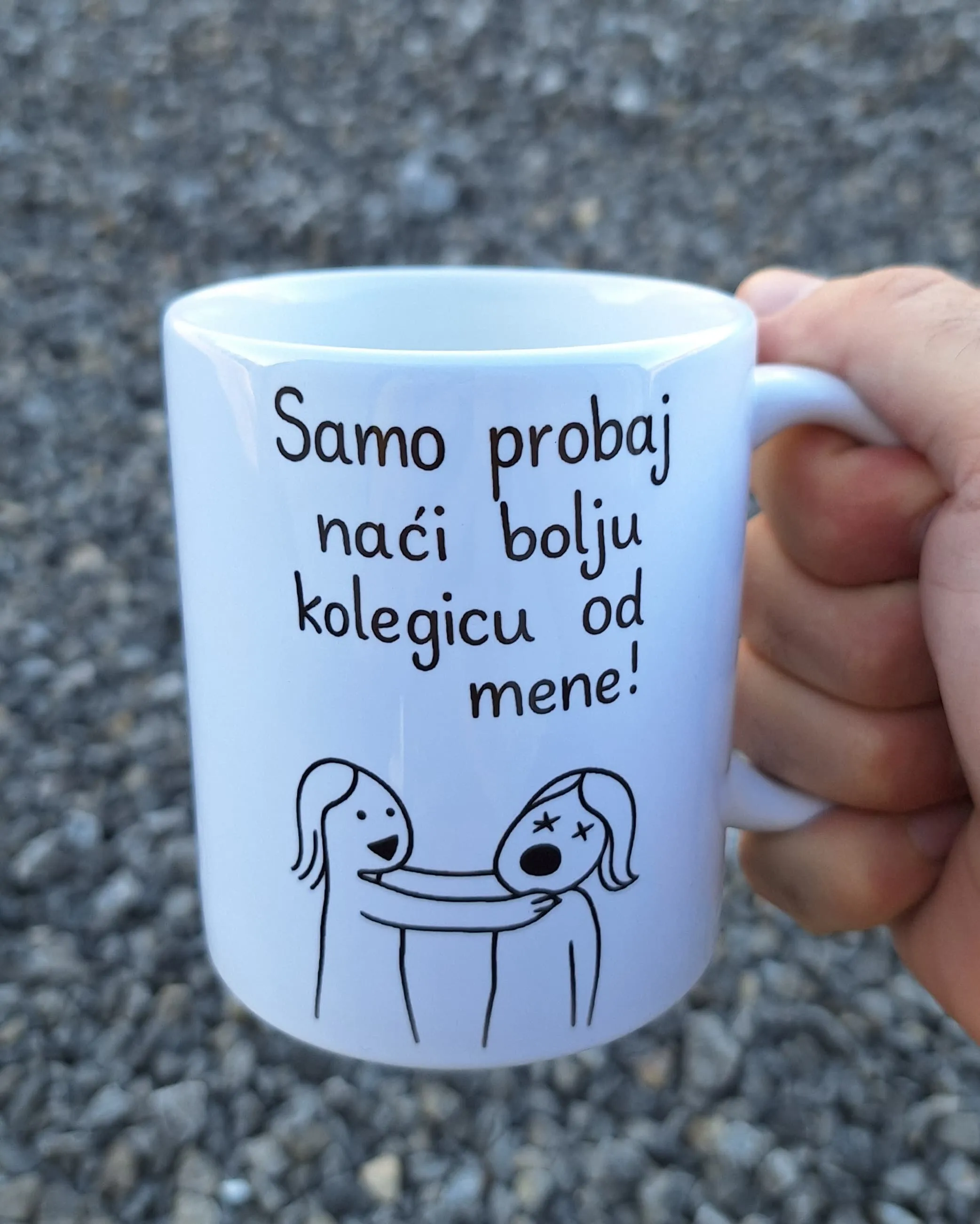 Savršen poklon za kolegicu s posla koja zaslužuje osmijeh uz svaku kavu. Duhovit natpis, minimalistička ilustracija i kvalitetan tisak čine ovu šalicu idealnim poklonom za rođendan, zahvalu ili uredski rastanak.