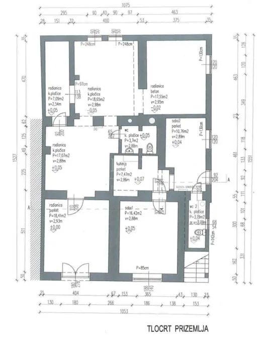 Prizemlje i 1. Kat su u roh-bau fazi te su im potrebne dodatne adaptacije, s time da prizemlje i strujne i instalacije i vodu a 1. Kat ima vodu. 2. Kat i potkrovlje su uređeni!