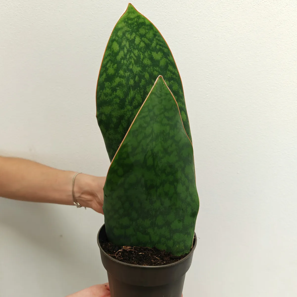 Opis: Sansevieria masoniana, poznata i pod nazivom “Whale Fin” zbog svojih velikih, širokih listova koji podsjećaju na peraju kita, impresivna je i atraktivna biljka koja potječe iz zapadne Afrike. Ova biljka pripada porodici Asparagaceae i izuzetno je popularna među ljubiteljima sobnog bilja zbog svoje izdržljivosti i jedinstvenog izgleda.