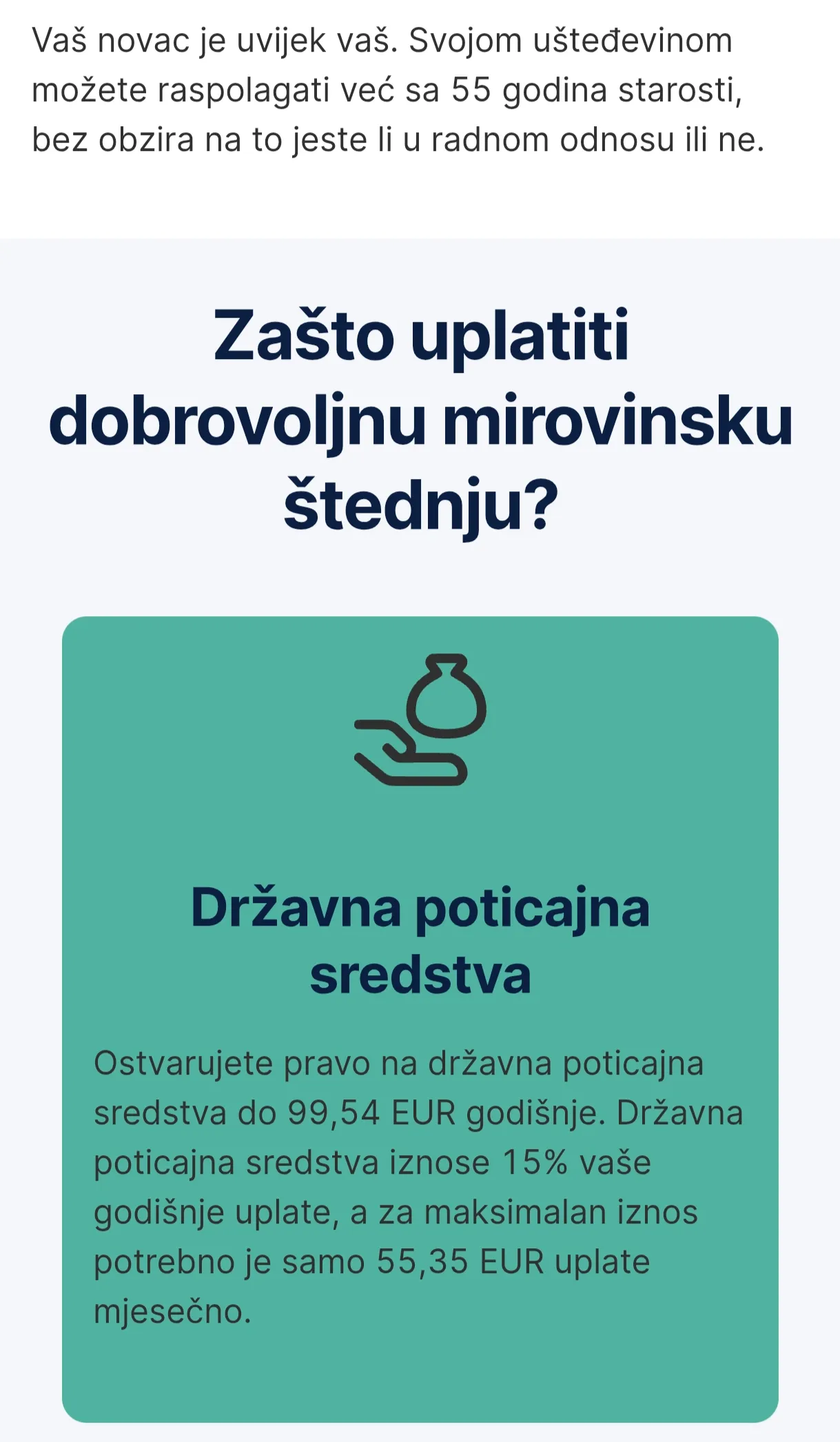Vec sa mjesečnim ulogom od 60 eura možete si osigurati stabilnu financijsku perspektivu u mirovini .