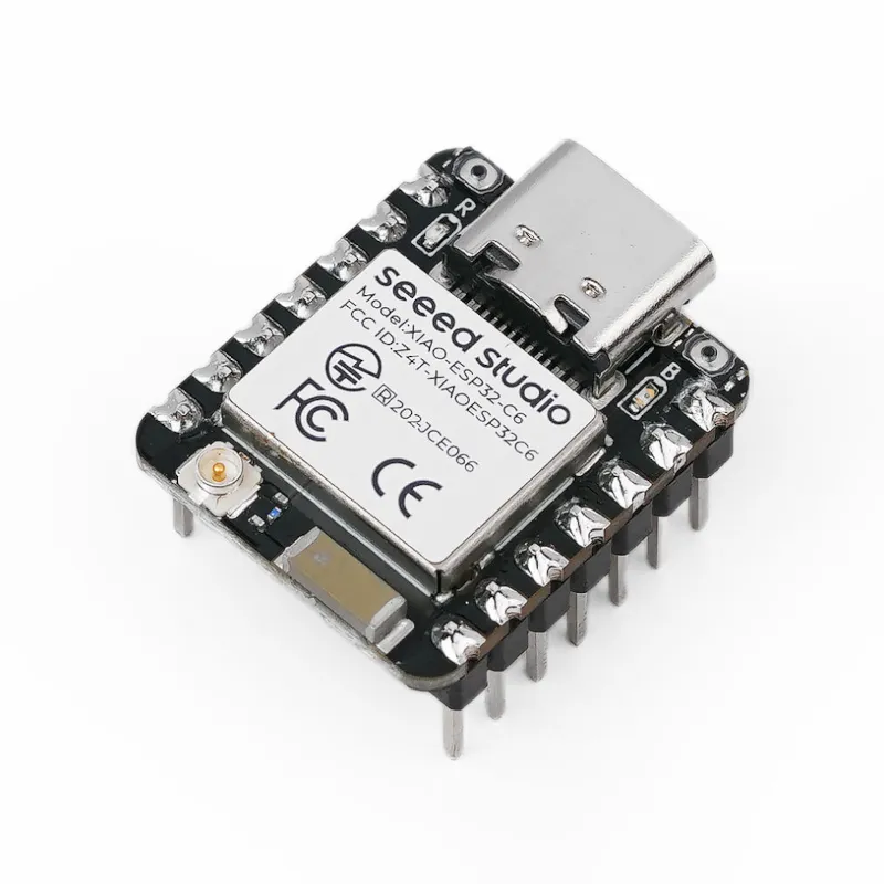 U malenom XIAO formatu (21x17.8 mm) smješten je ESP32-C6 SoC, izgrađen na dva 32-bitna RISC-V procesora, s visokoučinkovitim (do 160 MHz) i niskoenergetskim (do 20 MHz) procesorom. Čip ima 512 KB SRAM-a i 4 MB Flash memorije i podržava 2.4 GHz WiFi 6, Bluetooth® 5.3, Zigbee i Thread (802.15.4). U ovoj verziji dolazi sa zalemljenim headerima, ugrađenom keramičkom antenom i uFL/IPEX priključkom za vanjsku antenu (nije uključena u paket).