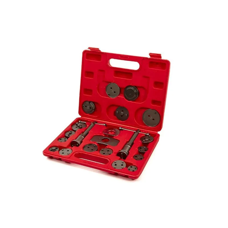 Komplet za resetiranje kočionih klipova prikladan je za gotovo sve marke automobila i sastoji se od dvije ploče za zadržavanje, dva vretena i sedamnaest različitih adaptera.