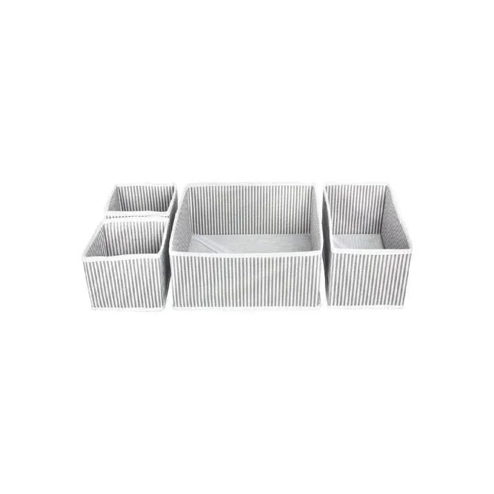 Set od 4 organizatora s prugama je idealan za organizaciju različitih predmeta u vašem domu. Uključuje veliki, srednji i dva mala organizatora različitih dimenzija: