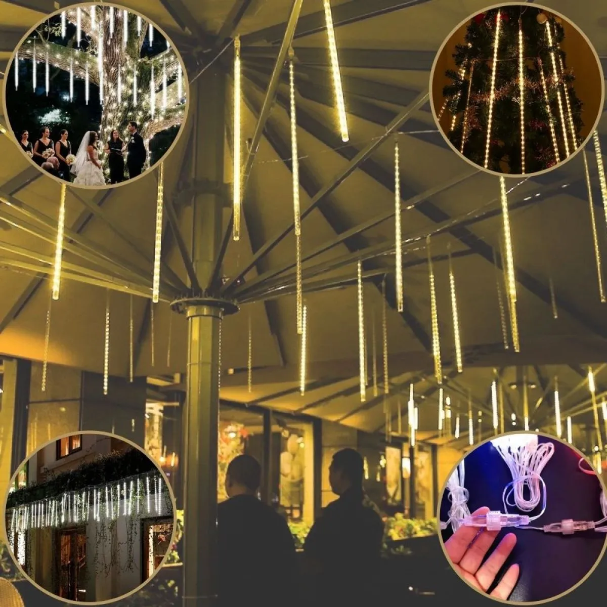 Svjetla za kišu meteora u obliku siga koje pružaju prekrasan svjetlucavi efekt. Svjetla svake žarulje pale se i gase jedno po jedno, brzo poput kiše meteora ili snijega koji pada na noćnom nebu.