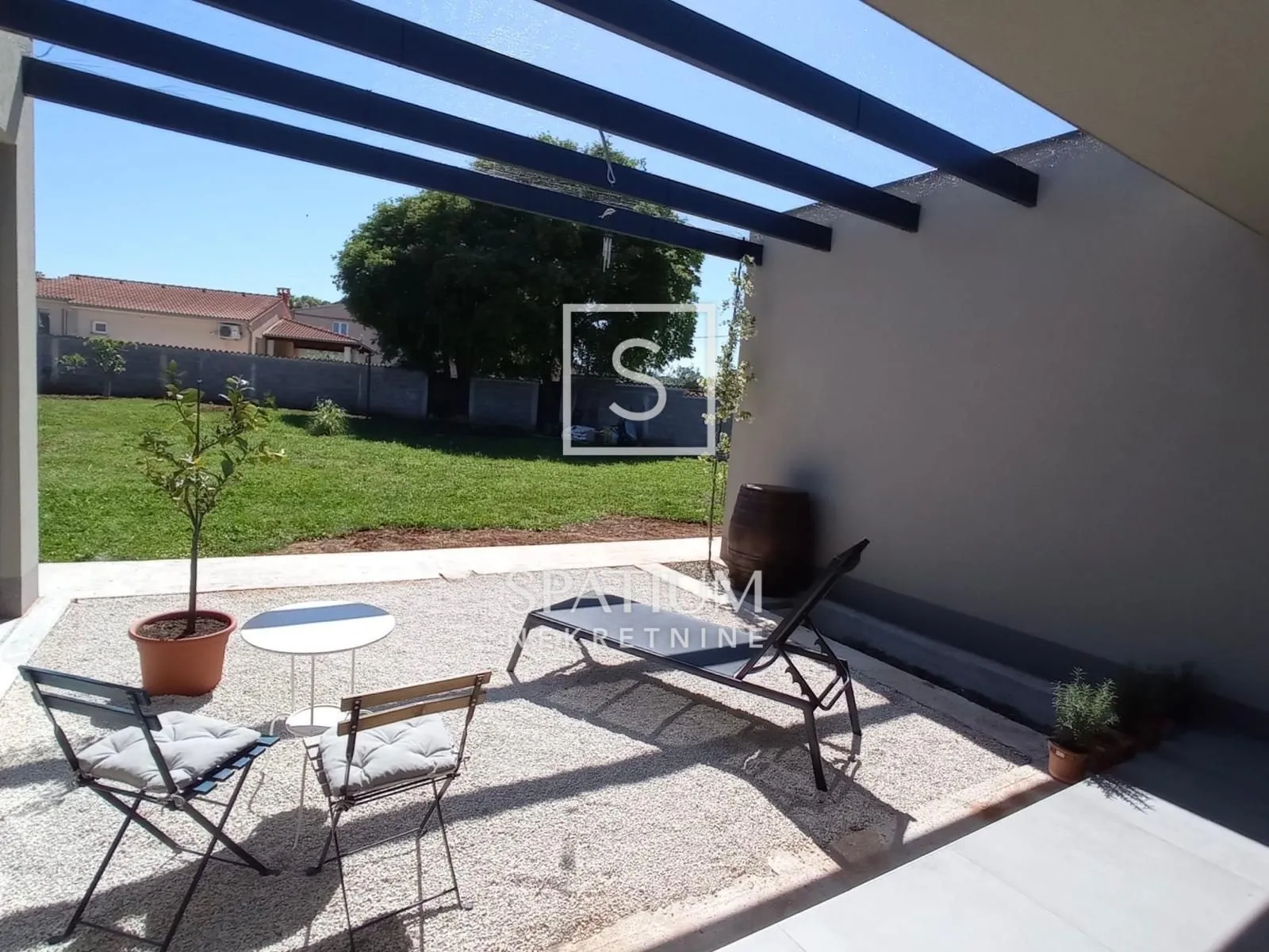 ŠIŠAN, u ponudu smo dobili novosagrađenu prizemnicu, ukupne površine 150 m2. U naravi se sastoji od dva stana koji su sačinjeni od kupaonice, spavaće sobe, "open space" kuhinje s blagovaonicom i dnevnim boravkom te dvije zajedničke pomoćne prostorije (vešeraj s kotlovnicom + ostava). Terasa je djelomično natkrivena, a na ostatak postavljena aluminijska pergola. Kuhinja je postavljena u jednom stanu. Troslojna PVC stolarija s komarnicima, demit fasada od 10 cm, podovi su obloženi talijanskom keramikom, sanitarije su Hansgrohe te kupaonski, kuhinjski kao i ugradbeni ormari u hodnicima rađeni su po mjeri. Klima jedinice su postavljene u oba stana te podno grijanje putem dizalice topline zrak-voda. Parcela je površine 1099 m2 te postoji mogućnost parcelacije. Kuća ima ravan krov, a postoji već i projekt za katnicu. Na okućnici, koja je kompletno ograđena kombinacijom betonskog zida i aluminijske bravarije ima dovoljno mjesta za parkiranje pet vozila te je parkirni dio od cca 150m2 uređen tlakavcima. Kolna ulazna vrata su aluminijska na daljinsko upravljanje. Smještena na mirnoj lokaciji, udaljena samo 2 km od mora te u blizini svih potrebnih sadržaja (trgovina, pošta, javni prijevoz...), predstavlja odličan izbor kao obiteljski dom ili kao investicija za bavljenje turizmom. Šišan, malo slikovito mjestašce tik do Pule, u srednjem vijeku jedno od najbogatijih naselja pulskog agera nastalo na ostatcima antičke prošlosti. Nalazi se na niskom plodnom poljoprivrednom području, okružen šumama i brdašcima s kojih pogled puca na šišansku okolicu, razvedenu obalu, modro more i na kvarnerske otoke. Za ostale informacije obratite se s povjerenjem. Sanjin Latinčić Agent s licencom +385 91 28 99 599 sanjin@spatium.hr Spatium nekretnine +385 51 272 903 info@spatium.hr ID KOD AGENCIJE: 3702 Sanjin Latinčić Agent s licencom Mob: +385 91 289 9599 Tel: +385 51 272 903 E-mail: sanjin@spatium.hr www.spatium.hr