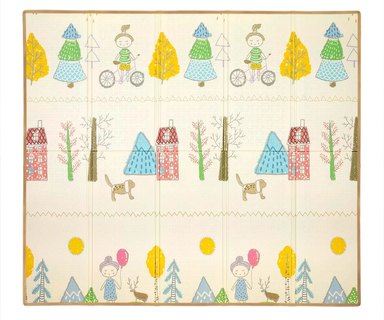 Dvostrana presavijena prostirka od pjene sigurna je i udobna za vaše dijete. Podloga vrlo dobro izolira od hladnog poda i zahvaljujući vodootpornoj površini lako se čisti i idealan je za dizajn vaše sobe. Dvostrana sklopiva pjenasta podloga za dječju igru - zahvaljujući prigušenim pastelnim bojama i dvostranoj grafici, uklopit će se u svaku dječju sobu. Zahvaljujući dvije različite strane, strunjača se može koristiti za mnoge igre. Možete provoditi zabavno vrijeme sa životinjama, izmišljajući igre i priče, a drugu stranu ulica iskoristiti za igru, npr. u gradu, koristeći svoje lutke, figurice životinja, kocke ili autiće za vožnju po zavojitoj cesti. Sigurno će biti puno zabavnih ideja. Pjenasta prostirka ima prekrasne boje, izdržljiva je i mekana na dodir, a prije svega sigurna je za dijete. Otirač je prekriven vodootpornim materijalom, što olakšava održavanje. KARAKTERISTIKE PROIZVODA: