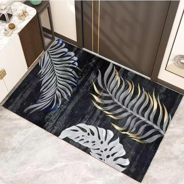 Ovaj moderni dekorativni tepih izrađen je od kvalitetnog poliestera, što ga čini mekanim, izdržljivim i jednostavnim za održavanje. Tamna podloga u kontrastu sa zlatnim i srebrnim listovima stvara efektan vizualni dojam i unosi dinamiku u svaku prostoriju.