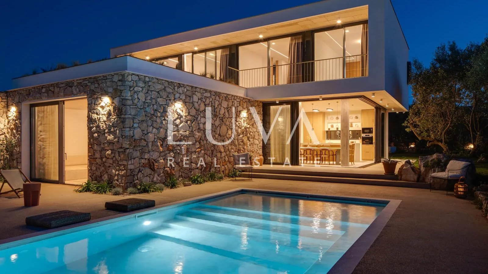 Prodaje se luksuzna vila s predivnom pogledom na more na otoku Šolta u Dalmaciji. Ova moderna luksuzna vila smještena je u mirnom mjestu Gornje Selo na Šolti te se s nje pruža predivan panoramski pogled na more prema Splitu. Vila je izgrađena 2024. godine na velikom potpuno ograđenom posjedu od čak 1.800 m2. Vila je građena u savršenoj kombinaciji modernih i tradicionalnih materijala pa se tako isprepliću tradicionalni kameni i moderni betonski zidovi. Vila je površine 270 m2, ima 4 spavaće sobe i 3 kupaonice. U prizemlju se nalaze prostrani minimalistički uređen dnevni boravak s velikim stablom masline i potpuno opremljena kuhinja iz koje se izlazi na terasu s vanjskim bazenom. Uz bazen se nalazi vanjska natkrivena kuhinja, vanjska sauna i ležaljke za sunčanje. Spavaće sobe na katu imaju izlaz na veliku terasu na kojoj se nalazi Jacuzzi iz koje se pruža predivan panoramski pogled na more. Na posjedu vile ima dovoljno parking mjesta, a sa stražnje strane vile se nalazi i garaža za 2 vozila. Za sva dodatna pitanja stojimo na raspolaganju ID KOD AGENCIJE: 15093 Ivan Jelaska Mob: +385 91 288 0082 E-mail: ivan@luvarealestates.com www.luvarealestates.com