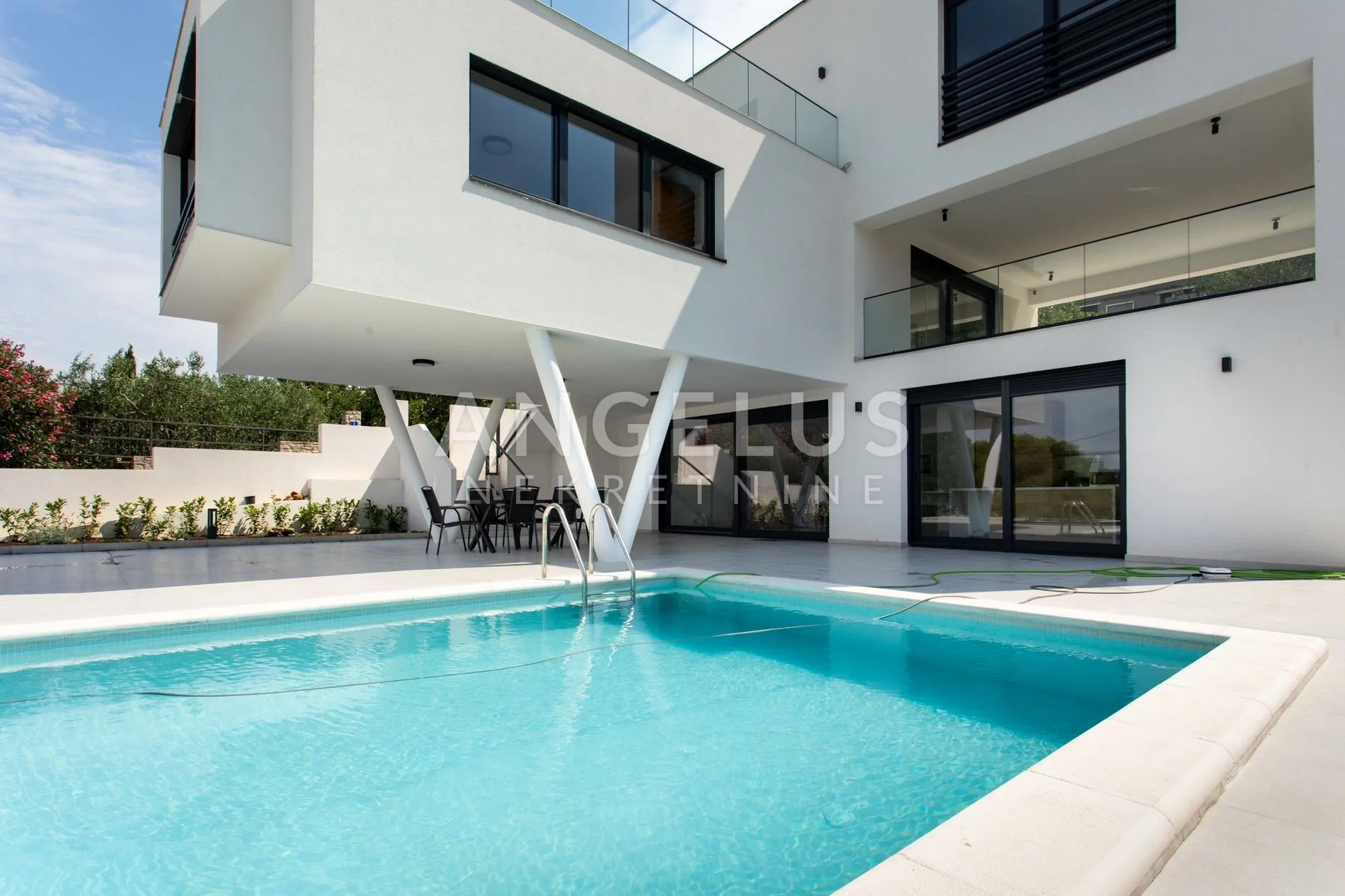 Prodaje se ekskluzivna moderna vila sa bazenom, smještena u prvom redu do mora - rijetka prilika na tržištu luksuznih nekretnina. Vila je netom izgrađena, a preostalo je dovršiti tek nekoliko detalja u okolišu kako bi u potpunosti zasjala.