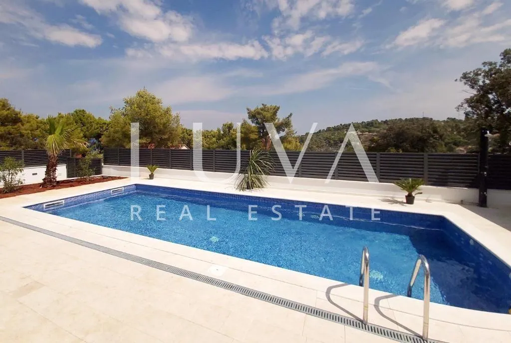 Luksuzna vila uz more u Rogaču – moderan dizajn, potpuna privatnost i vrhunska oprema Na otoku Šolti, u prestižnom i mirnom dijelu Rogača, samo stotinjak metara od mora nalazi se iznimno uređena luksuzna vila površine 237 m² raspoređenih na dvije etaže. Smještena u intimnoj i zelenilom ispunjenoj zoni, ova nekretnina nudi savršeno okruženje za odmor, život ili turističko ulaganje visoke kategorije. Prostran, funkcionalan interijer i vrhunska tehnološka oprema Unutrašnjost vile obuhvaća četri elegantne spavaće sobe, svaka opremljena bračnim krevetom, noćnim ormarićima, lampama, sjedećim kutkom s dvije fotelje te pažljivo izrađenim ugradbenim ormarima po mjeri. Svaka soba ima izlaz na balkon, staklene stijene s zavjesama i koltrinama te vlastitu kupaonicu opremljenu walk-in tušem sa staklenom stijenkom, grijanjem i modernim sanitarnim elementima. Dnevni dio u prizemlju čine dizajnerska DanKüchen kuhinja s vrhunskim uređajima (dvije hladnjake, pećnicu, touch ploču, napu, mikrovalnu, perilicu suđa, toster, sokovnik, mikser i potpuno opremljeno posuđe), prostrana blagovaonica, elegantni dnevni boravak te gostinjski WC. Ispod unutarnjeg stubišta nalazi se praktična ostava s perilicom i sušilicom rublja. Wellness zona dodatno obogaćuje ponudu vile – opremljena je vlastitom klimatizacijskom jedinicom od 3,5 kW, teretanom i saunom, savršena za potpunu opuštenost kroz cijelu godinu. Vila je u potpunosti klimatizirana putem šest mono klima sustava (svaka 3,5 kW) s vanjskim jedinicama smještenima na krovu, kako bi se sačuvao elegantan vanjski izgled kuće. Objekt ima javni priključak na struju i vodu, septičku jamu, te je dodatno opremljen solarnom elektranom snage 10 kW. Sigurnost je podignuta na najvišu razinu: instaliran je video nadzor s četiri kamere, alarmni sustav sa senzorima pokreta, dima i vode, a vrt ima automatski sustav navodnjavanja. Vrhunski eksterijer za uživanje na otvorenom Okućnica je projektirana za potpuni užitak u mediteranskom ambijentu – uz vanjski jacuzzi i uređene prostore za sunčanje, tu je i natkrivena blagovaonica na otvorenom s velikim stolom za 10 osoba i roštiljem, idealna za druženja i ljetne večeri. U vanjskom dijelu i unutar same vile postavljeni su kvalitetni zvučnici koji dodatno upotpunjuju atmosferu. S obzirom na vrhunsku opremljenost, visoki estetski standard i potpunu privatnost, vila ispunjava kriterije kategorizacije od 4 zvjezdice. Blizina mora, uredna infrastruktura i izniman komfor čine ovu nekretninu savršenom kombinacijom luksuza i funkcionalnosti, bilo za osobnu upotrebu ili kao investiciju s izvrsnim potencijalom. Ako je za ovu nekretninu na nekoj drugoj web stranici objavljena niža cijena ista vrijedi i kod nas. Za sva dodatna pitanja i razgled nekretnine stojimo Vam na raspolaganju. U slučaju posla posredovanja naše agencije postoji obveza plaćanja agencijske provizije. Za ovu nekretninu je kontakt: Ivan, +385 91 288 0082 ID KOD AGENCIJE: 15740 Ivan Jelaska Mob: +385 91 288 0082 E-mail: ivan@luvarealestates.com www.luvarealestates.com