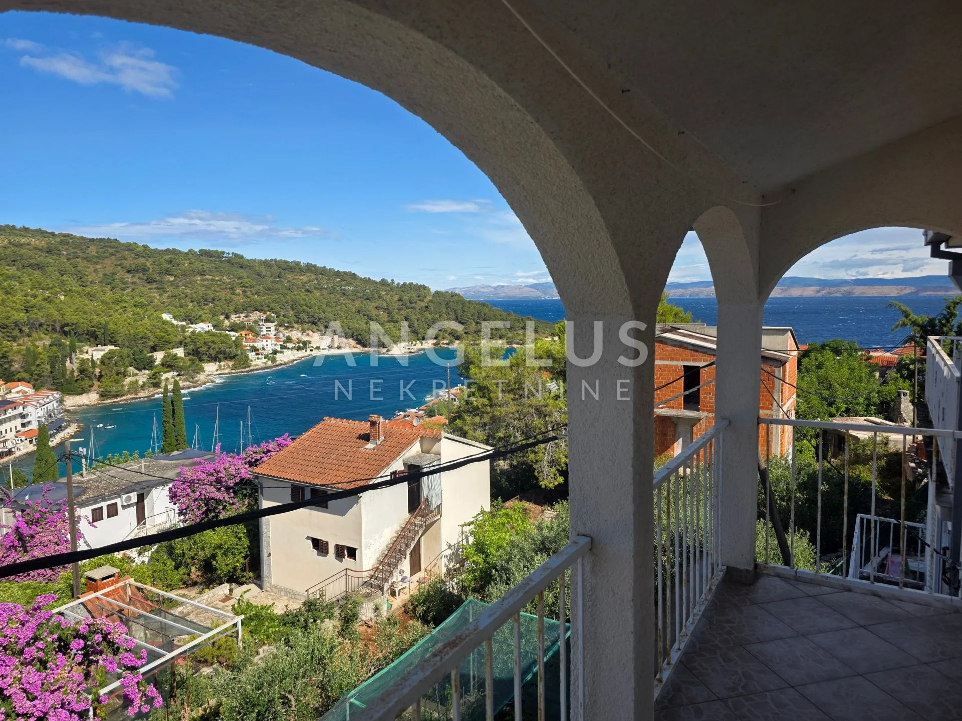 Na zapadnoj strani su balkoni sa kojih se pruža predivan otvoren pogled na mjesto i more.