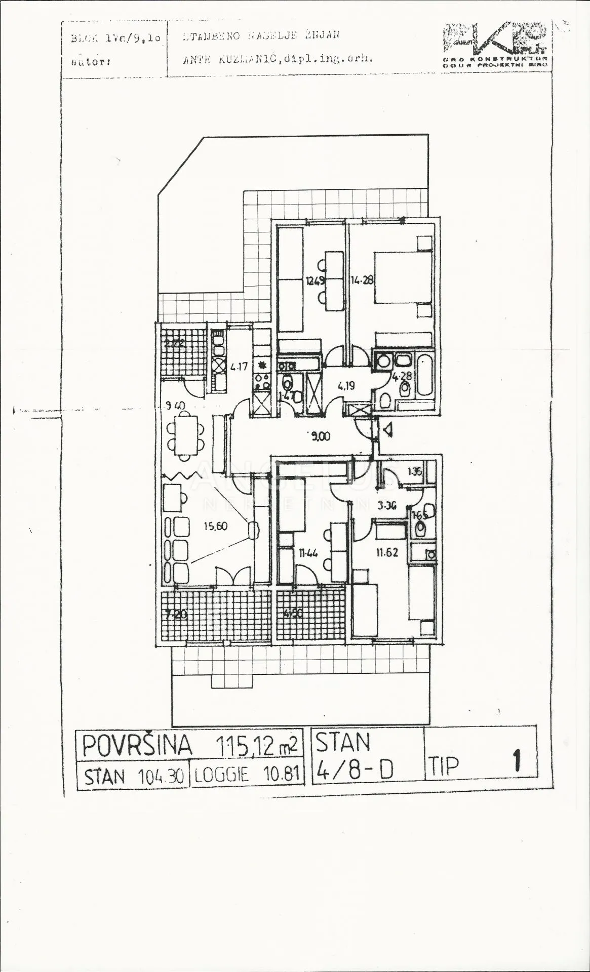 Predmet kupoprodaje je veliki stan koji se nalazi u stambenoj zgradi izgrađenoj 1991. godine, u neposrednoj blizini Žnjanskih blizanaca. Položen je u prizemlju te ima izlaz u privatni vrt sa južne i sjeverne strane. Veliki četverosobni stan koji se sastoji od četiri spavaće sobe, dnevnog boravka sa blagovaonicom i kuhinjom, kupaonice, dva dodatna toaleta, ostave, dva predsoblja, tri lođe i hodnika. Ukupne površine 115,12 m2 odnosno stambene površine 104,3 m2 te lođe ukupno po obračunu 10,81 m2.