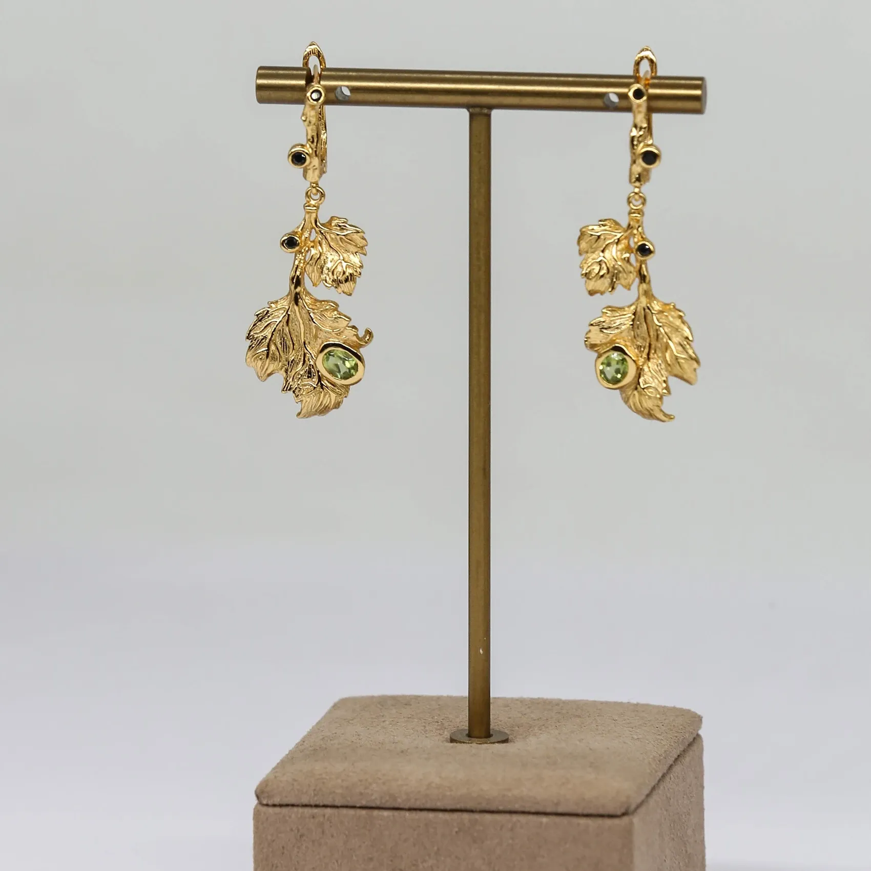 Ženske naušnice u srebru s pozlatom i zelenim opalom.