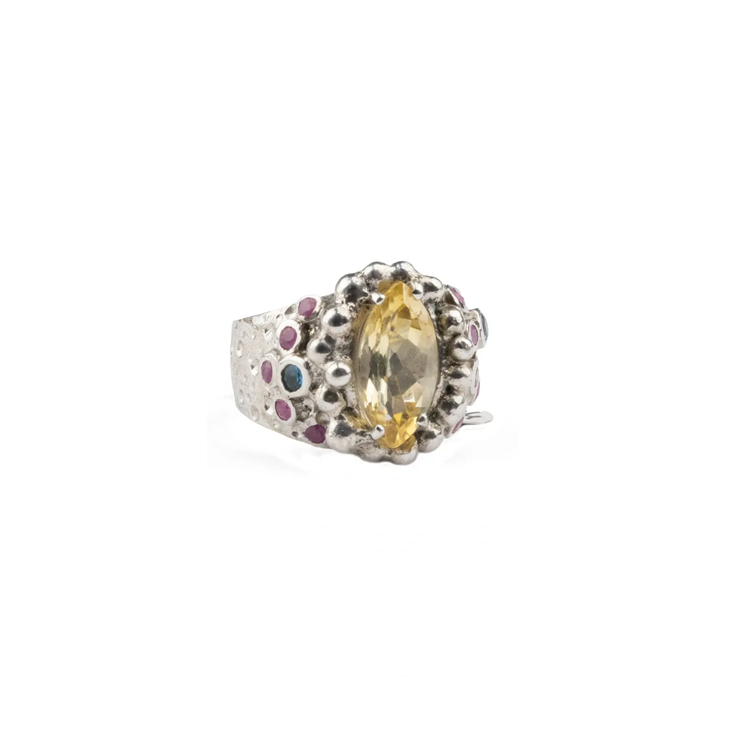 Ženski prsten izrađen od srebra 925 sa žutim, rozim i plavim cirkonima.