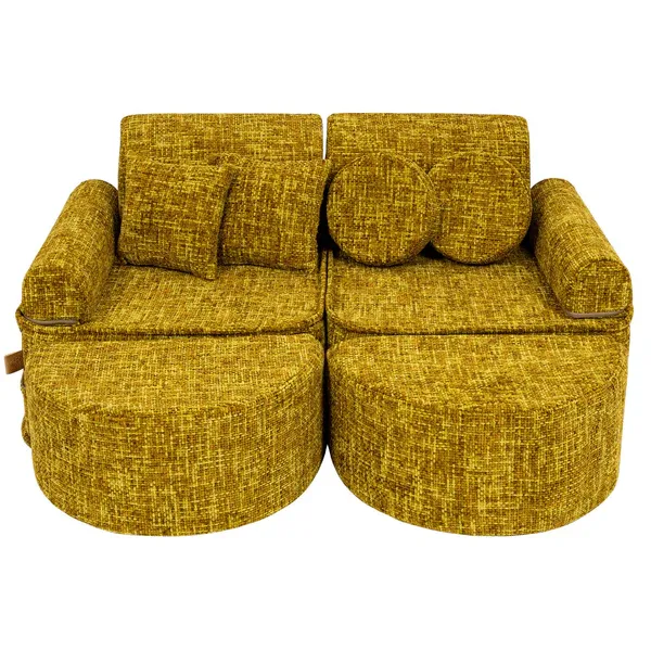 Njegov modularni dizajn otvara vrata maštovitoj igri. Više zasebnih dijelova može se slobodno preurediti, transformirajući se u male fotelje, tunele, konstrukcije za igru ili udobne garniture za sjedenje. To potiče kreativnost, neovisnost i logičko razmišljanje, a istovremeno nudi mekanu udobnost za svakodnevnu upotrebu.
