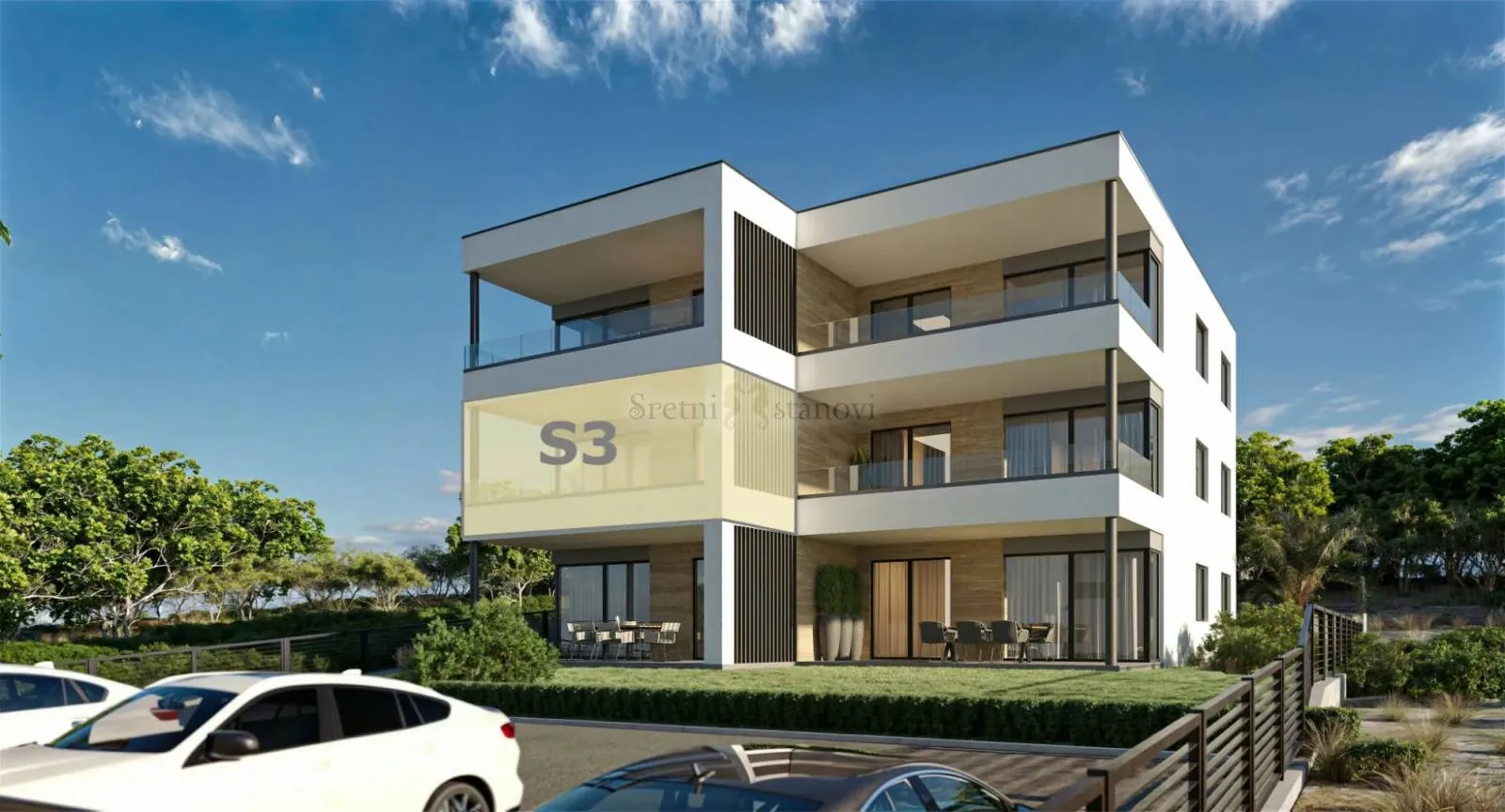 Apartman S3 u zgradi 1 nudi moderan život u srcu Mandra. S otprilike 76,25 m² pažljivo dizajniranog prostora, ovaj apartman na prvom katu spaja udobnost s mediteranskim šarmom. Vrhunac je prostrani balkon s prekrasnim pogledom na more - idealan za uživanje u morskom povjetarcu i opuštanje na otvorenom. Trgovine, kafići, restorani, plaža, pa čak i lokalni proizvođači sira i maslinovog ulja nalaze se na samo nekoliko minuta hoda, što svakodnevni život čini praktičnim i ugodnim. Apartman se sastoji od: Dnevnog boravka i blagovaonice (pripremljena kuhinjska ugradnja): cca. 24,20 m² Spavaća soba 1: cca. 10,60 m² Spavaća soba 2: cca. 12,10 m² Kupaonica: cca. 4,80 m² Odvojeni WC: cca. 2,00 m² Hodnik: cca. 8,90 m² Skladište / praonica (Vešeraj): cca. 3,10 m² Balkon: cca. 16,10 m² (50 % uključeno u ukupnu stambenu površinu) Parkirno mjesto: cca. 2,50 m² Značajke i konstrukcija Pod: visokokvalitetne pločice u cijelom prostoru Sanitarni elementi: kupaonica s tušem i umivaonikom; odvojeni WC (sanitarni elementi uključeni) Klima uređaj: po jedna jedinica u svakoj spavaćoj sobi i u dnevnom boravku Kuhinja / namještaj: nije uključeno (priključci pripremljeni) Vanjski prostor: prostrani balkon s pogledom na more. ID KOD AGENCIJE: 7889 Sretni stanovi d.o.o. Mob: +385 99 497 7432 Tel: 051/301-502 E-mail: info@sretnistanovi.hr www.sretnistanovi.hr