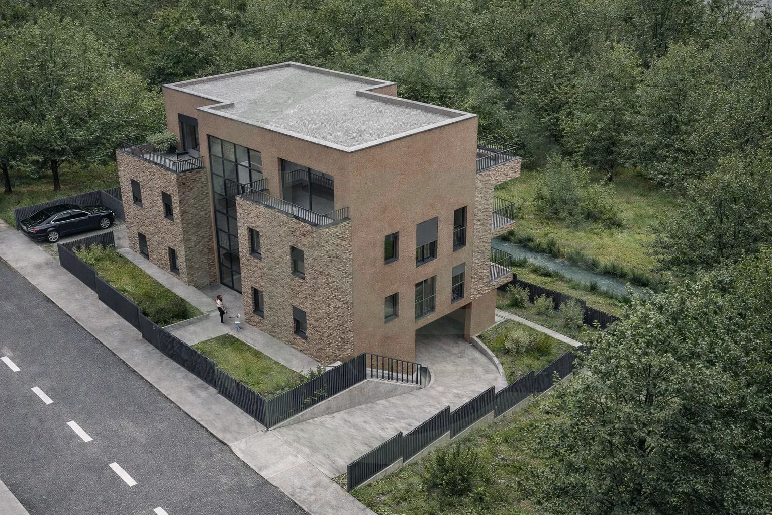 Prodaju se stanovi u novogradnji, izuzetne kvalitete, odlične lokacije na rubu zelenog pojasa sa poglodom na potok i zelenilo. Stambena zgrada se počinje gradit u prvom kvartalu 2026. godine te će se sastojati od ukupno 5 stanova te će svakom stanu pripasti dva garažna parkirna mjesta. Zgrada će biti razvijena u četiri etaže od čega se u podrumu nalaze parkirna mjesta, u visokom prizemlju dva stana, na prvom katu također sva stana te veliki penthouse na drugom katu. Svi stanovi će biti opremljeni sustavom grijanja putem dizalice topline, podnim grijanjem, aluminijskom stolarijom, kvalitetnom keramikom i sanitarijama. Predmetni stan penthouse oznake S5 se nalazi na drugom katu te se sastoji od ulaznog prostora, kupaonice sa WC-om, tri spavaće sobe od kojih jedna ima vlastitu garderobu i kupaonicu, dnevnog boravka sa kuhinjom i blagovaonicom te izlazom na dvije terase. Stanu pripadaju i dva garažna parkirna mjesta što čini ukupnu obračunsku površinu od 130,48 m2. Sami stan je površine 106,72 m2. ID NEKRETNINE: 1084 Više informacija na +385 99 556 6655 Karlo info@k2nekretnine.com K2 NEKRETNINE QBAT STUDIO d.o.o.