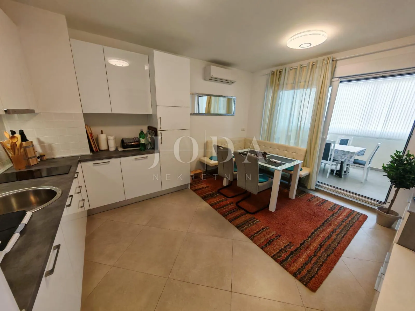 STAN S VELIKOM OKUĆNICOM S POGLEDOM NA MORE Prodajemo odličan stan u visokom prizemlju zgrade novije gradnje. Stan se sastoji od dvije spavaće sobe, kupaonice, kuhinje s blagovaonicom, dnevnog boravka s izlaskom na prostranu lođu s koje se vidi more. Stanu dodatno pripada i spremište u hodniku zgrade, velika popločana terasa s vrtnom kućicom i kompletnim vrtnim namještajem. Stan je potpuno klimatiziran (grijanje–hlađenje Toshiba), svaka prostorija ima svoju unutarnju jedinicu. Velika prednost stana su i dva prostrana parkirna mjesta u vlasništvu. ID KOD AGENCIJE: 7687 Igor Zubović Agent Mob: 0992770405 Tel: 051403771 E-mail: igor@joda-nekretnine.hr www.joda-nekretnine.hr