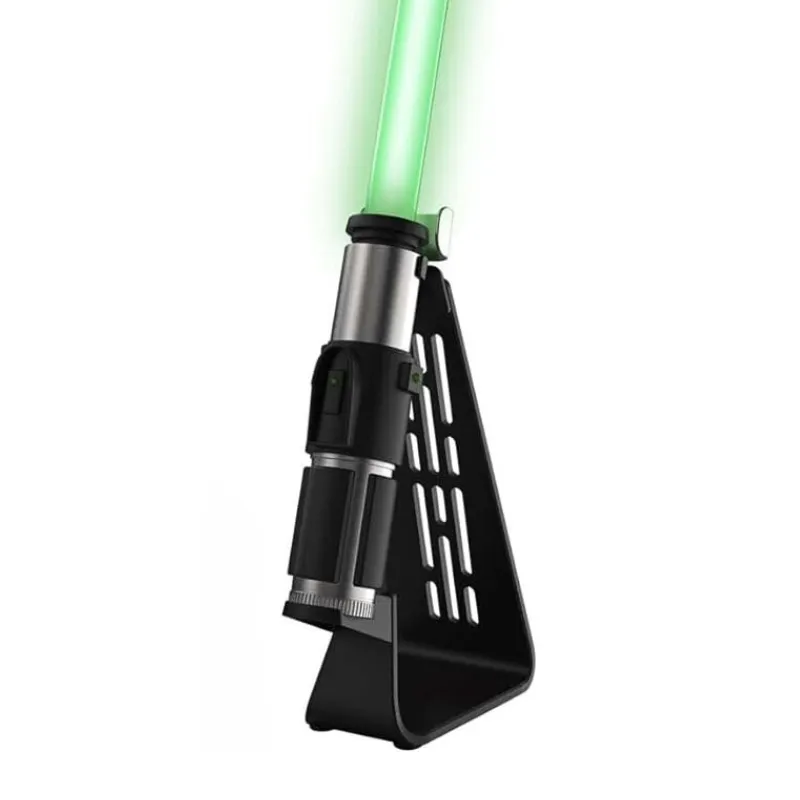 Zahvaljujući kombinaciji naprednih LED svjetala i zvučnih efekata, Yoda Force FX Elite Lightsaber je najrealističniji Force FX Lightsaber ikada dizajniran. Pomoću prekidača i gumba na dršci možete aktivirati autentične zvučne efekte, progresivno paljenje, efekt sudara u borbi, efekt rezanja zida, odbijanje blastera, duel efekt i borbene sekvence. Ponosno izložite svoj lightsaber na priloženom stalku – sa ili bez uklonjive oštrice – i pokažite priloženi uklonjivi Kyber kristal. Lightsaber dolazi s ugrađenom punjivom baterijom koja se ne može zamijeniti.