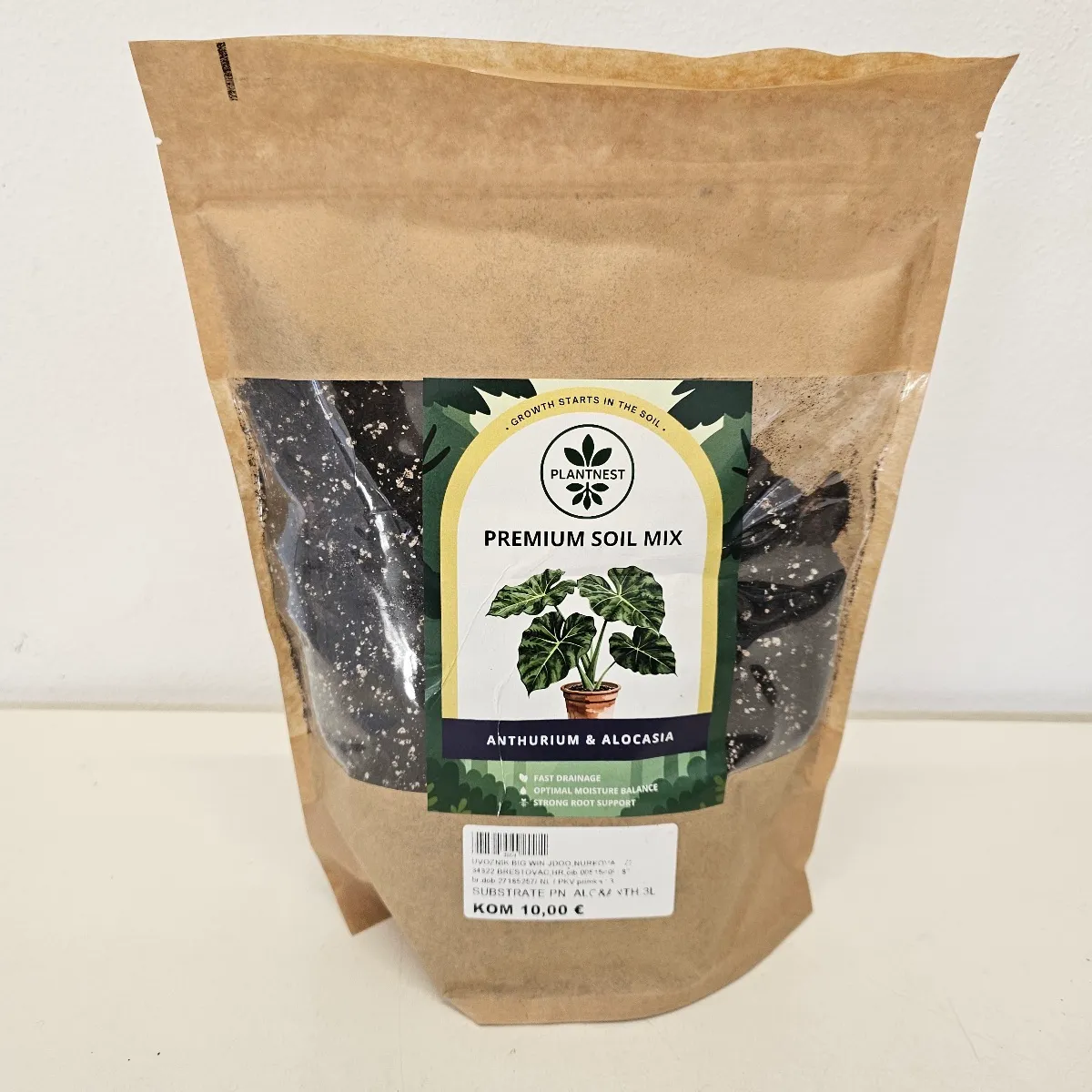 Alocasia i Anthurium pripadaju skupini tropskih biljaka (aroida) koje u prirodi rastu u prozračnom, humusnom i vrlo dobro dreniranom supstratu. Zato je važno koristiti lagan i strukturiran supstrat koji omogućuje dobru cirkulaciju zraka oko korijena.