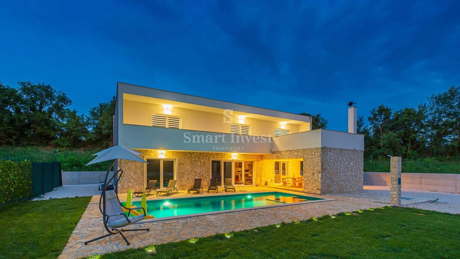 ISTRA, SVETVINČENAT OKOLICA - MODERNA NOVOGRADNJA S 4 SPAVAĆE SOBE I BAZENOM, 10 KM OD MORA Na prodaju je nova kvalitetna kuća na izvrsnoj lokaciji, u neposrednoj blizini dućana, kafića, crkve, smještena između lijepih srednjovjekovnih gradića Svetvinčenta i Vodnjana u južnoj središnjoj Istri. Od mora i plaža Barbarige, Peroja, Fažane, udaljena je samo 10-ak kilometara. Od Grada Pule (centar i zračna luka ) - 17 km, Rovinja - 29 km, te 240 km od Zagreba... Kuća ukupne površine 243 m2 (sa terasama) smještena na zemljištu površine 1.001 m2. Stambena površina kuće 167 m2 (dnevni boravak s kuhinjom i blagovaonicom, 4 spavaće sobe, svaka s vlastitom kupaonicom i izlazom na terasu). Kuća je opremljena s 5 klima uređaja, električnim podnim grijanjem i unutarnjim kaminom na kruta goriva, video nadzorom ( Hikvision ), alarmnim sustavom Ajax ( pokrivene su sve prostorije IC senzorima i protupožarnim senzorima). Iz prizemlja se izlazi na prostranu terasu s prostorom za roštilj i druženje i prema bazenu od 40 m2 (10 x 4 m) sa whirpool-om. Okućnica je je potpuno ograđena i opremljena raznim sadržajima za igru i zabavu. Godišnji prinos na bazi 14 tjedana najma kuće je cca 35.000 - 40.000€ neto. Ukoliko tražite sigurnu investiciju sa izvrsnim povratom, ovo je odlična nekretnina! Iskoristite spuštenu cijenu! Vlasništvo i dokumentacija uredni. Za više informacija i razgled nazovite +385/99/320-0011 ID KOD AGENCIJE: 14510 Danijela Urlić - PODRUČJE ISTRA Agent s licencom Mob: +385/(0)99/320-0011 E-mail: danijela.urlic@smart-invest.hr www.smart-invest.hr