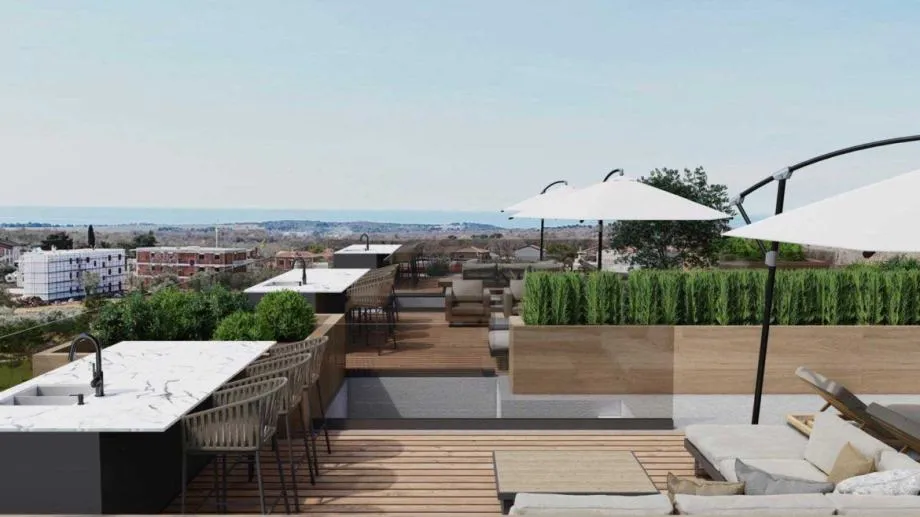 Stan D11 nalazi se na trećem katu stambene zgrade i sastoji se od ulaznog hodnika s otvorenom kuhinjom, blagovaonicom i dnevnim boravkom s izlazom na terasu, spavaća soba s izlazom na balkon, još jedna spavaća soba, kupaonica, te izlaz na privatnu krovnu terasu s pripremom za jacuzzi, saunu i ljetnu kuhinju . Električno podno grijanje u cijelom stanu, klima uređaji, kvalitetna talijanska keramika, sanitarije Villeroy i Boch.U prizemlju zgrade nalazi se zajedničko spremište za bicikle, te dva parkirna mjesta.