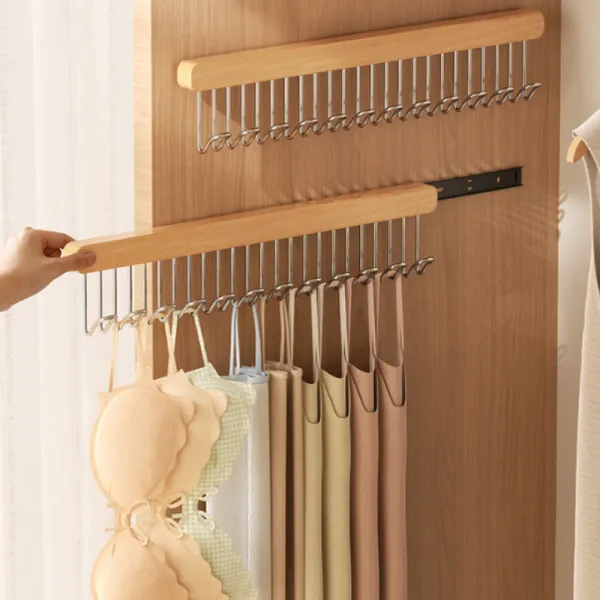 Organizirajte svoj ormar na praktičan i elegantan način uz teleskopsku drvenu vješalicu s 12 udica! Ova inovativna vješalica omogućuje jednostavno povlačenje u lijevu ili desnu stranu, čime štedi prostor i olakšava pristup vašim stvarima. Izrađena od kvalitetnog drveta i nehrđajućeg čelika, osigurava dugotrajnu izdržljivost i stabilnost. Savršena za vješanje odjeće, šalova, remena, torbica ili drugih modnih dodataka, čineći vaš ormar urednijim i funkcionalnijim.