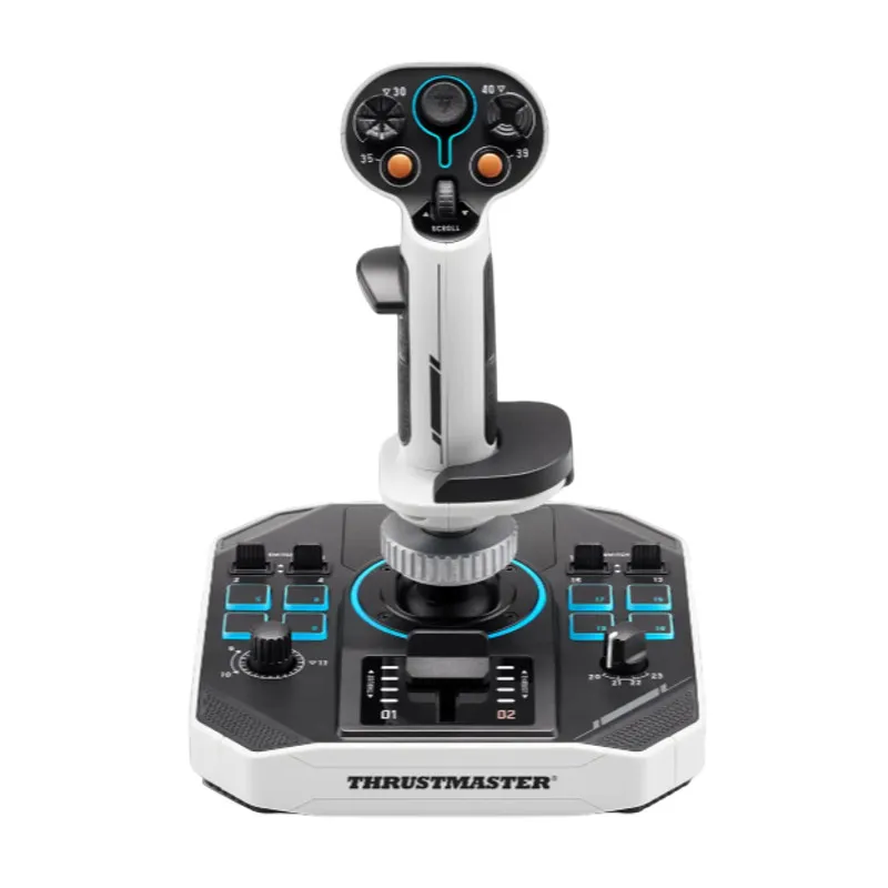 Doživi izvanrednu preciznost i potpunu odzivnost uz Thrustmaster SOL-R 1 Flightstick – vrhunski upravljač posebno dizajniran za svemirske simulacije i zračne borbe. Ovaj ergonomski oblikovan joystick s RGB osvjetljenjem i modularnim dizajnom omogućuje ti potpuno uranjanje u svjetove igara poput Elite Dangerous, Star Citizen ili Microsoft Flight Simulator. Ključne značajke: 44 programabilne funkcije: Ukupno 44 akcijske naredbe, uključujući 21 gumb na ručki (2 okidača, 2 "hat" prekidača, 1 mini ručica, 1 kotačić za palac) i dodatne kontrole na bazi. 3 fizičke osi + 5 virtualnih osi: X, Y i Z osi s 16-bitnom preciznošću zahvaljujući tehnologiji H.E.A.R.T. (HallEffect AccuRate Technology™), te dodatne virtualne osi za još bolju kontrolu. Dvoručni i udoban zahvat: Zamjenjive ergonomske potpore za palac i zapešće omogućuju prilagodbu za dešnjake i ljevake. Ikoničan dizajn s RGB osvjetljenjem: Nadahnut znanstveno-fantastičnim blockbusterima, joystick uključuje 11 softverski upravljanih RGB zona za potpuno iskustvo igre. Kompatibilnost s Thrustmaster ekosustavom: Odvojiva ručka kompatibilna je s AVA bazom, kao i s ručkama Viper, Hornet i budućim modelima. Podrška za T.A.R.G.E.T. softver: Napredni softver omogućuje testiranje, konfiguraciju i programiranje Thrustmaster kontrolera za potpunu prilagodbu tvojoj igri.