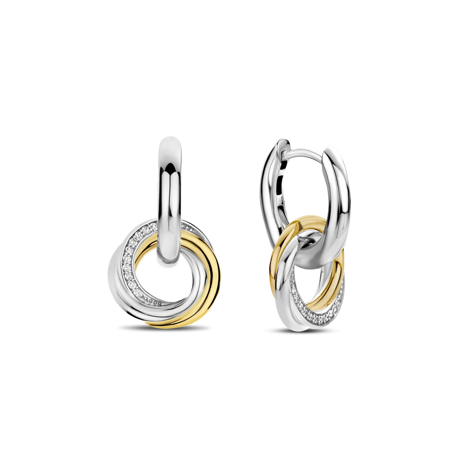 Ženske naušnice iz Ti Sento kolekcije, izrađene u srebru 925 s pozlatom i cirkonima.