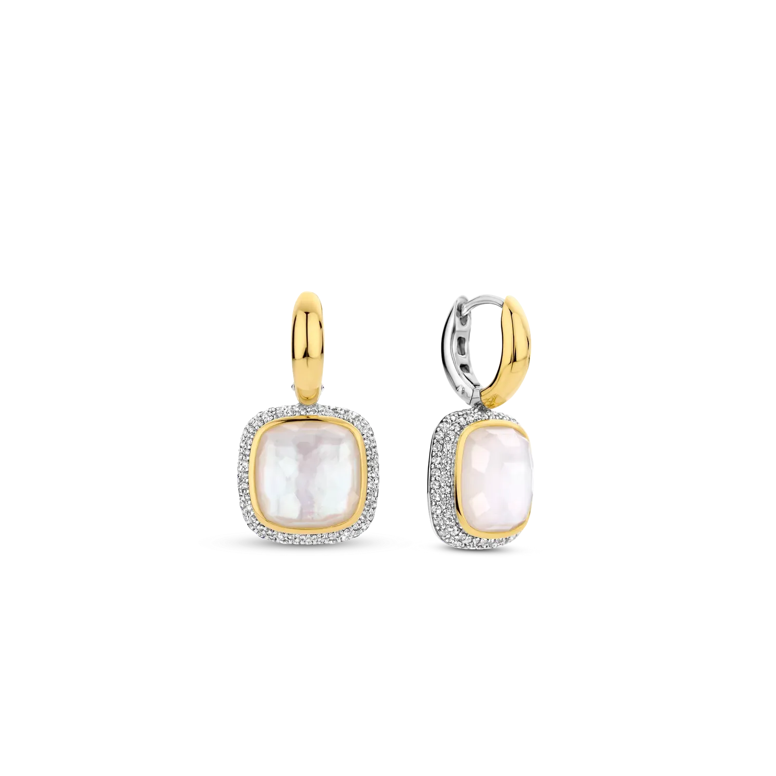 Ženske naušnice iz Ti Sento kolekcije, izrađene u srebru 925 s pozlatom i dodatkom cirkona i sedefa.