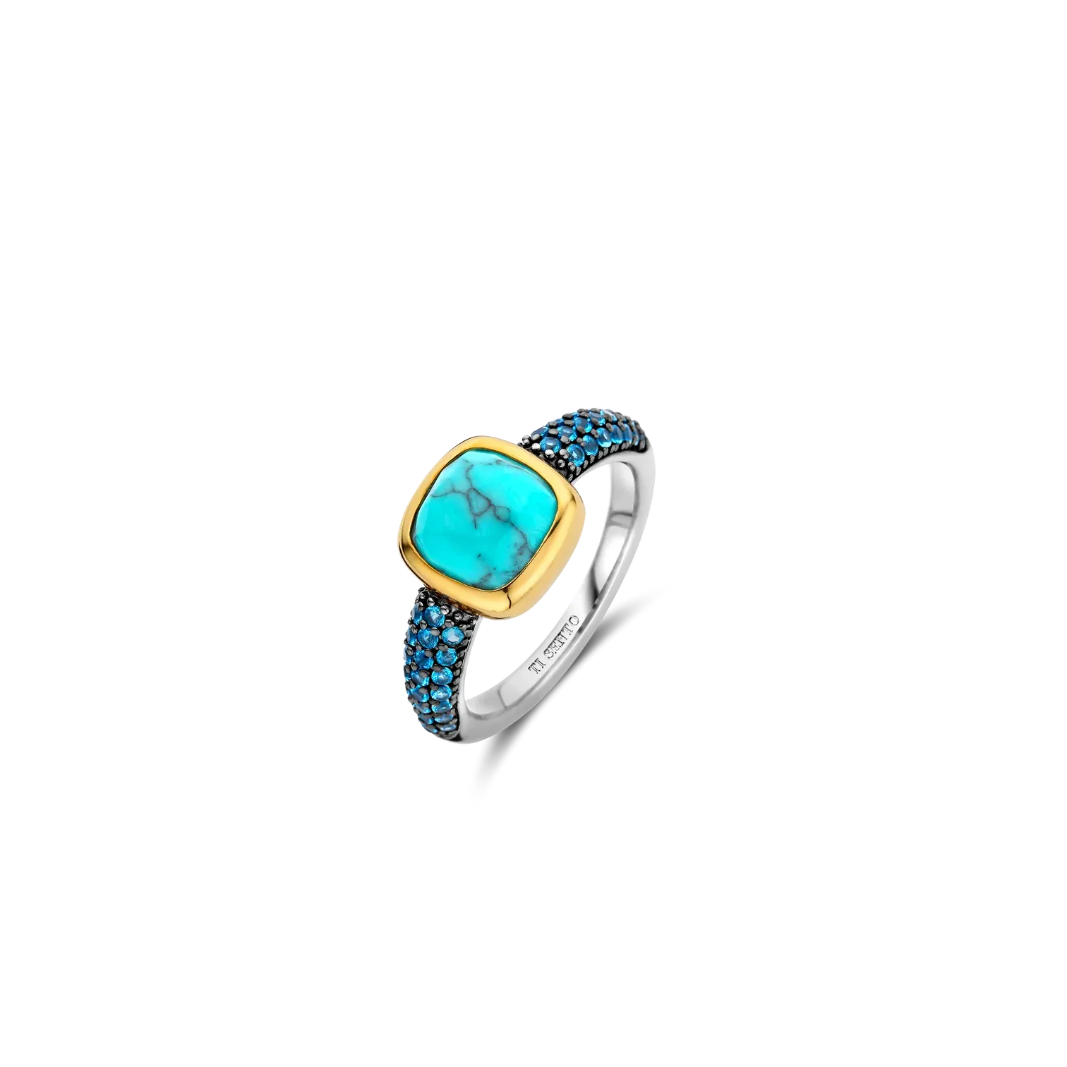 Ženski srebrni prsten iz Ti Sento kolekcije, izrađen u srebru 925 s tirkiznim cirkonima i dragim kamenom Plavim tirkizom.