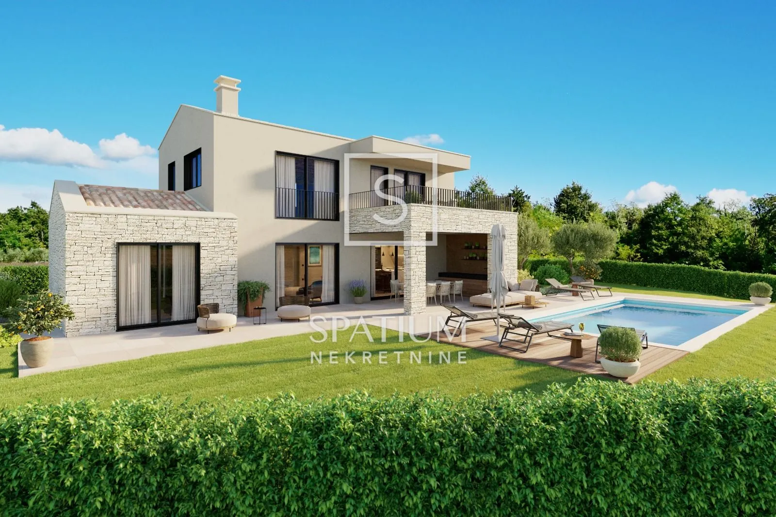 TINJAN – SAMO U NAŠOJ PONUDI! Prodaje se ekskluzivna niskoenergetska novogradnja ukupne stambene površine 174 m², smještena na prostranoj parceli od 851 m², u mirnom naselju nadomak Tinjana. Okružena obiteljskim kućama i luksuznim vilama, ova kuća pruža savršenu kombinaciju privatnosti, mira i modernog načina života. Nekretnina se proteže na dvije etaže. U prizemlju se nalazi prostrani dnevni prostor s moderno opremljenom kuhinjom i otokom, povezan s blagovaonicom i dnevnim boravkom u kojem centralno mjesto zauzima kamin. Iz dnevne zone izlazi se na natkrivenu terasu i uređeni vrt u kojem je smješten bazen površine 34 m². Prizemlje dodatno upotpunjuju jedna spavaća soba, moderna kupaonica, gostinjski toalet, praonica i ostava. Na katu su smještene dvije dodatne spavaće sobe, svaka sa svojom kupaonicom, kao i prostrana terasa koja pruža dodatni prostor za odmor. Kuća je projektirana kao niskoenergetska, opremljena podnim grijanjem na dizalicu topline i modernim sustavima klimatizacije, dok velike staklene stijene omogućuju obilje dnevnog svjetla i prekrasan pogled na okućnicu i bazen. Na parceli su osigurana dva parkirna mjesta, a planirana je i ugradnja video nadzora za dodatni osjećaj sigurnosti. Posebnu vrijednost ovoj ponudi daje mogućnost kupnje susjedne poljoprivredne parcele, koja budućem vlasniku nudi priliku za dodatno proširenje zemljišta ili vlastiti kutak u prirodi. U cijenu je uključena kompletna unutarnja oprema vrhunske kvalitete, a plaćanje se odvija fazno i prati dinamiku gradnje. Ne propustite priliku za investiciju u nekretninu koja spaja suvremeni dizajn, funkcionalnost i održivu gradnju. Za sve dodatne informacije stojimo Vam na raspolaganju. Tinjan je mirna općina u središtu Istre, poznata kao "Općina pršuta", koja se ponosi dugom tradicijom proizvodnje istarskog pršuta. Svake godine u listopadu održava se Internacionalni sajam pršuta, privlačeći posjetitelje iz cijele Hrvatske i šire. Tinjan nudi miran, ruralni način života, okružen prirodom, maslinicima i vinogradima, te brojne povijesne znamenitosti i autentičnu arhitekturu. Za više informacija obratite nam se s povjerenjem. Petra Juričić agent s licencom +385 91 185 1211 petra@spatium.hr Spatium nekretnine +385 51 272 903 info@spatium.hr ID KOD AGENCIJE: 5824 Petra Juričić Agent s licencom Mob: +385 91 185 1211 Tel: +385 51 272 903 E-mail: petra@spatium.hr www.spatium.hr