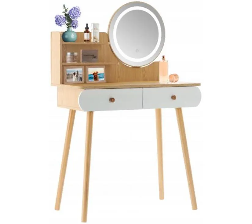 Toaletni stolić ima 2 ladice u koje možete pohraniti kozmetiku, nakit i ostale potrebne stvari te 2 police.