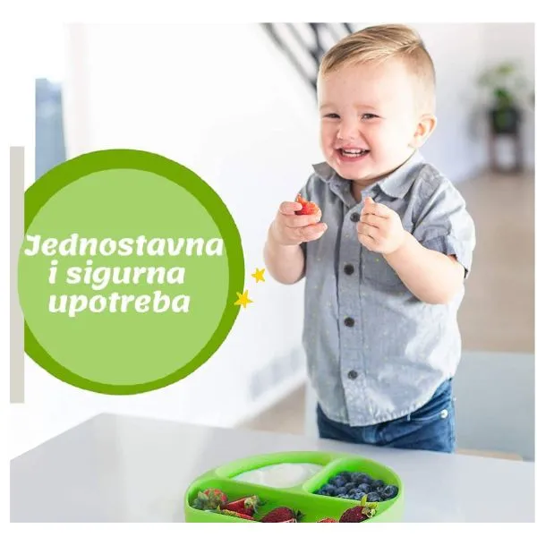 Oblik – tanjurić je dizajniran tako da najbolje odgovara priboru za bebe i omogućuje jednostavno hranjenje.