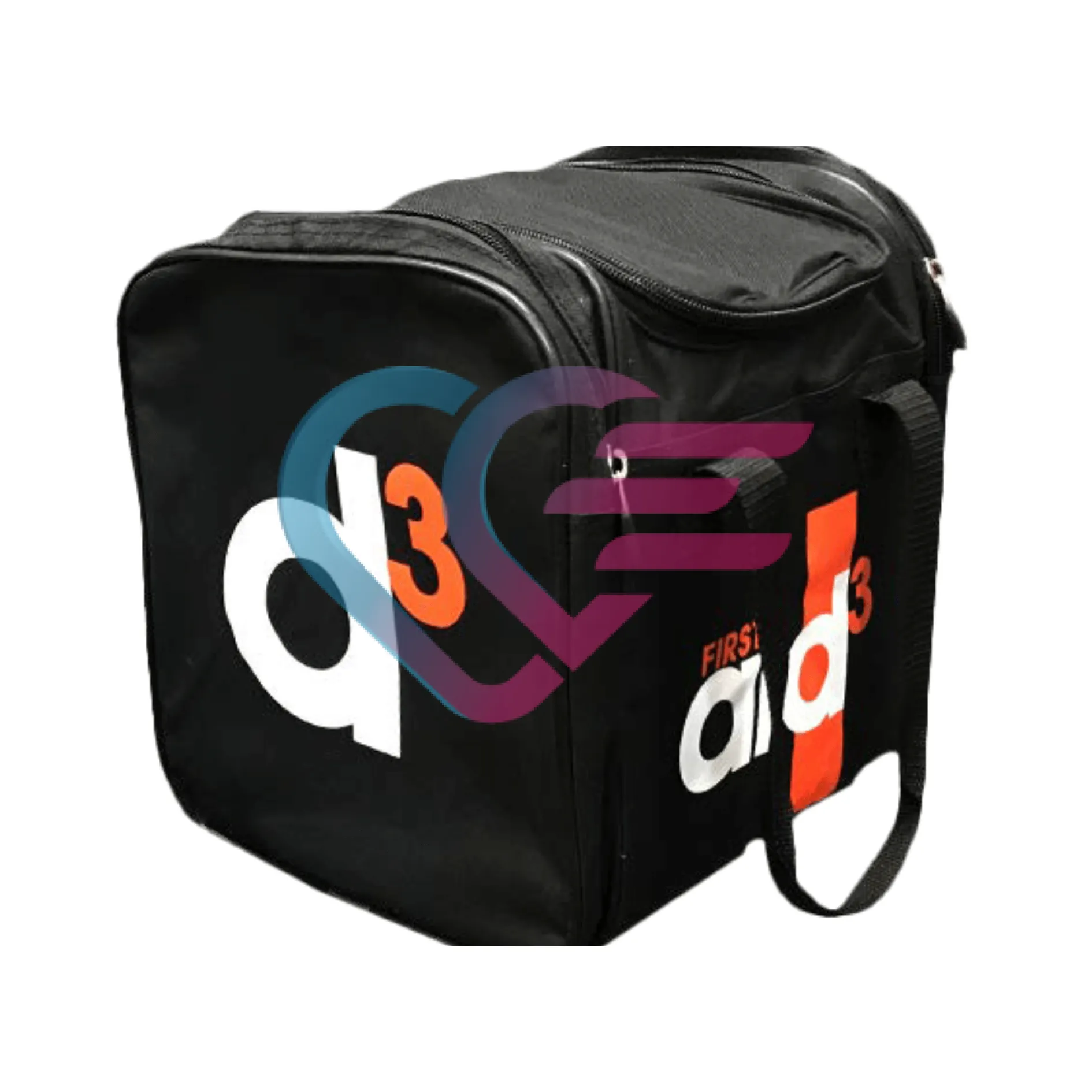 Prijenosni hladnjak u crnoj boji, s dodatna dva pretinca s obje strane torbe.