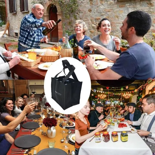Ova elegantna i praktična vinska torba s pregradama za 6 boca idealan je dodatak za sve ljubitelje vina. Izrađena je od netkanog materijala visoke kvalitete, koji osigurava dugotrajnost i čvrstoću. Svaka pregrada osigurava sigurnost i zaštitu boca tijekom transporta. Savršena je za piknike, večere s prijateljima ili kao poklon za posebne prilike. Uz ovu torbu, vaša vina uvijek stižu na odredište u savršenom stanju.