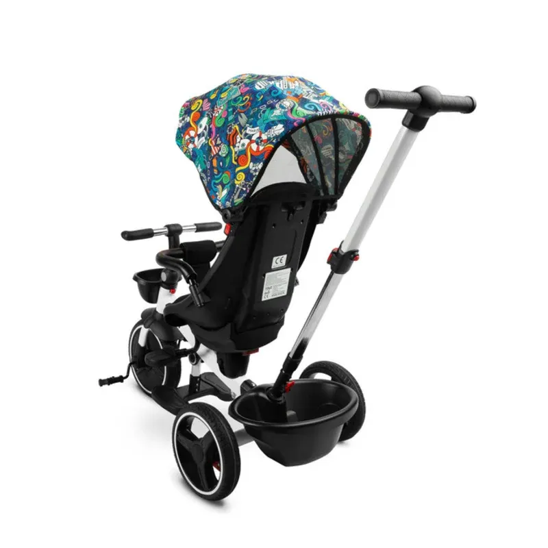 TOYZ Dječji tricikl Dash Melange Dash tricikl odlična je alternativa kolicima. Mogu se koristiti kao bicikl, na kojem se dijete može voziti samo, i kao kolica s krovom, u kojima se dijete može prevoziti okrenuto prema naprijed i prema natrag. Na prednjem i stražnjem dijelu bicikla nalaze se košare za nošenje sitnica. Bicikl je opremljen s 2 oslonca za noge: koji strše iz okvira tricikla i pričvršćeni su za sjedalo. Svaki od oslonaca za noge je podesiv za udobnost djeteta. Stražnji kotači bicikla opremljeni su kočnicama, što vam omogućuje da sigurno ostavite bicikl bez brige da će otići. Najvažnije karakteristike: