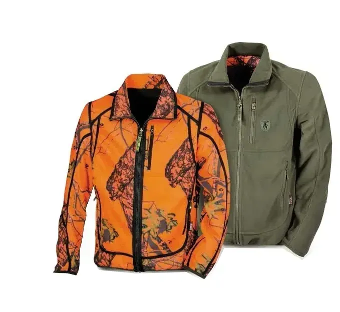Vjetrootporan flis sa prozračnom membranom WIND-SYSTEM. Dvostrana jakna u dvije opcije: zelena ili narančasta maskirna sa MOSSY-OAK printom.Na svakoj su strani tri praktična džepa.