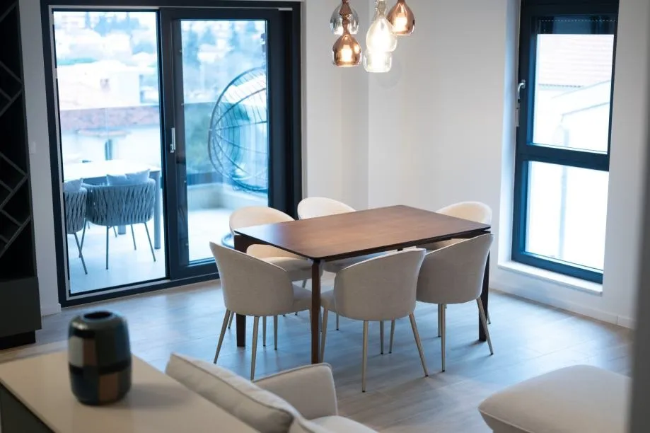 Osim modernog dizajna i visoke opremljenosti, ovaj novoizgrađeni stan krasi i izvrsna lokacija svega 300 m od mora (5 minuta hodanja).